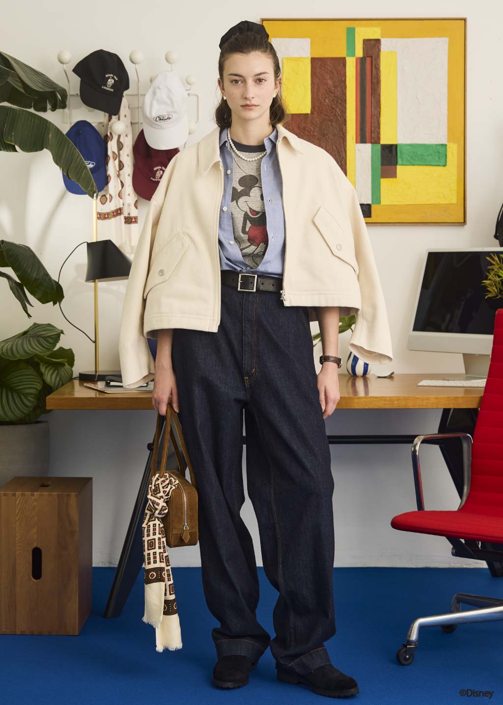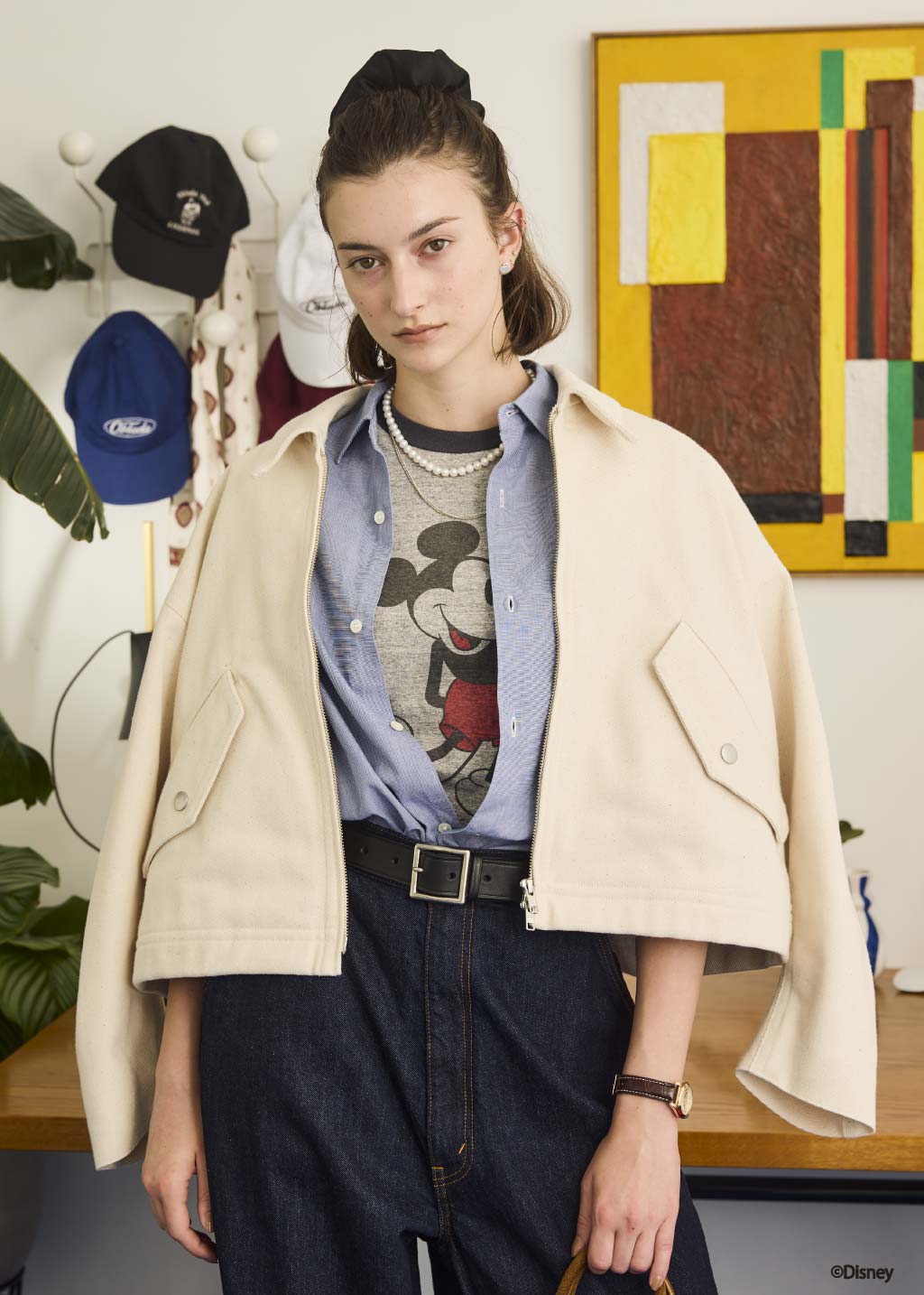 大きすぎず小さすぎないちょうど良いサイジングで、シャツやニットカーディガンの中にレイヤーしても可愛く着られるサイズ感にしています。