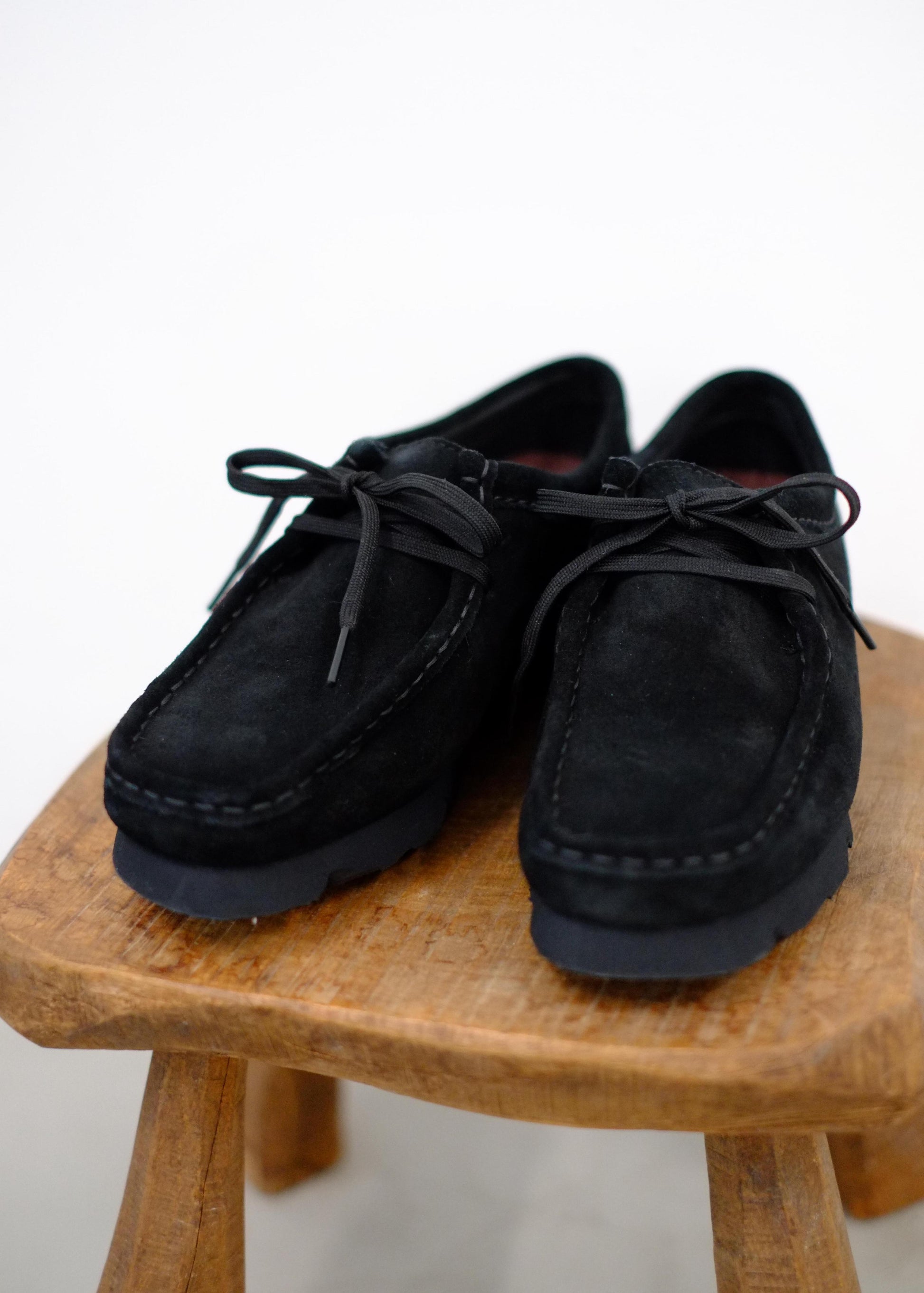 This Wallabee is made of suede, but the black color is solid and does not fade easily, which is one of my favorite points. I regularly brush it with a suede brush and spray it with a waterproof spray.