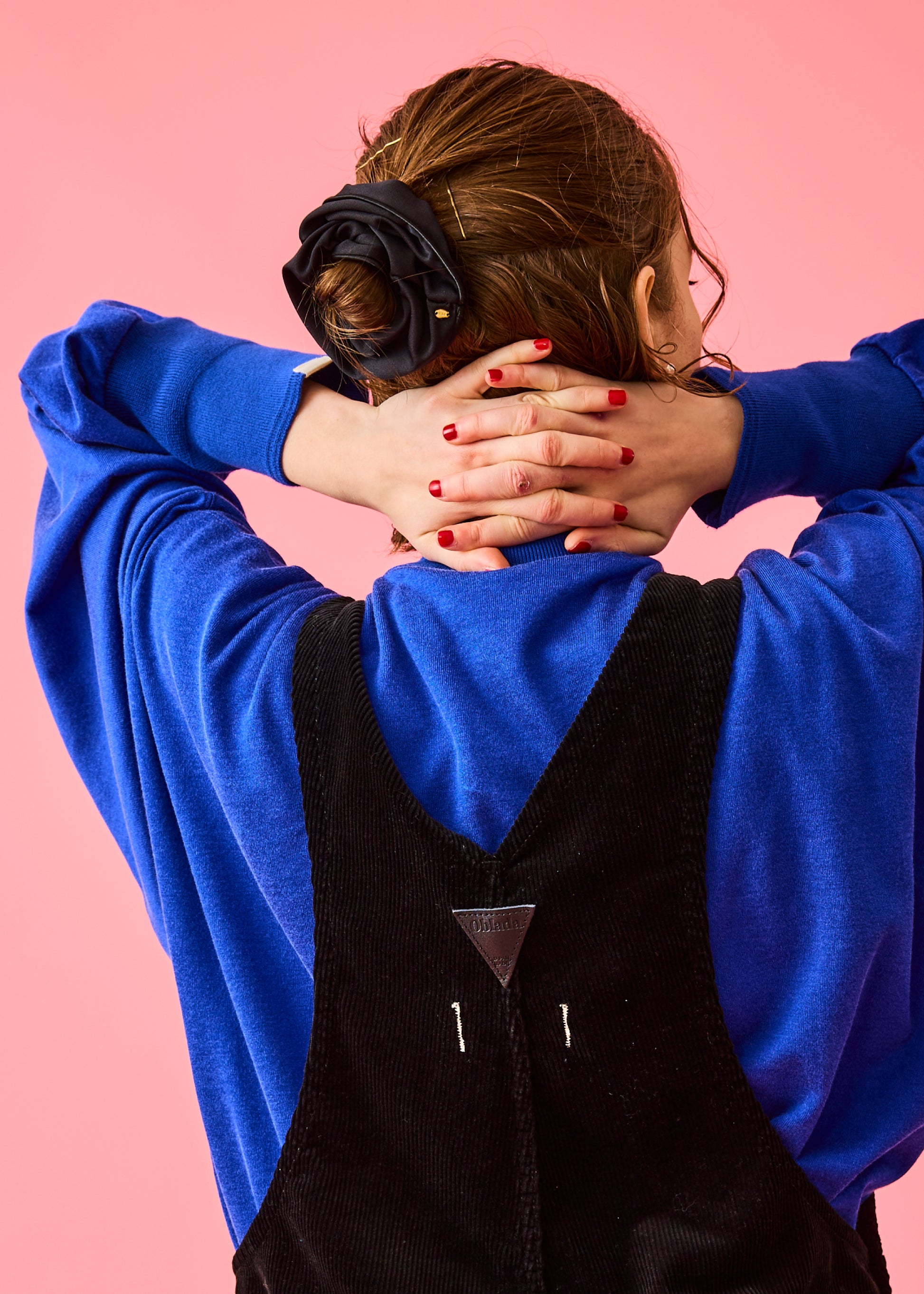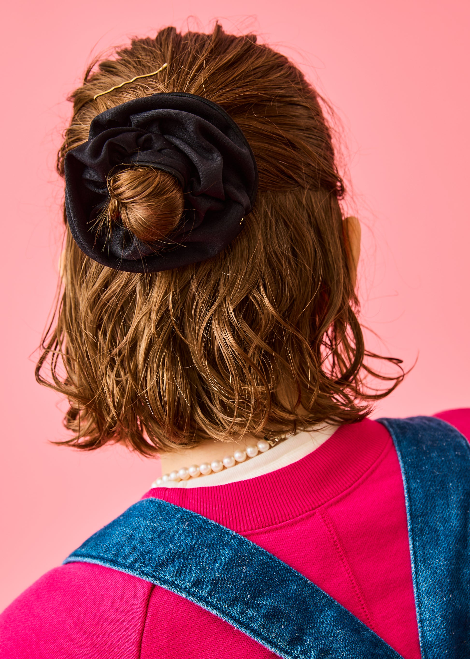 A velvet and satin scrunchie to match the autumn/winter theme color black.