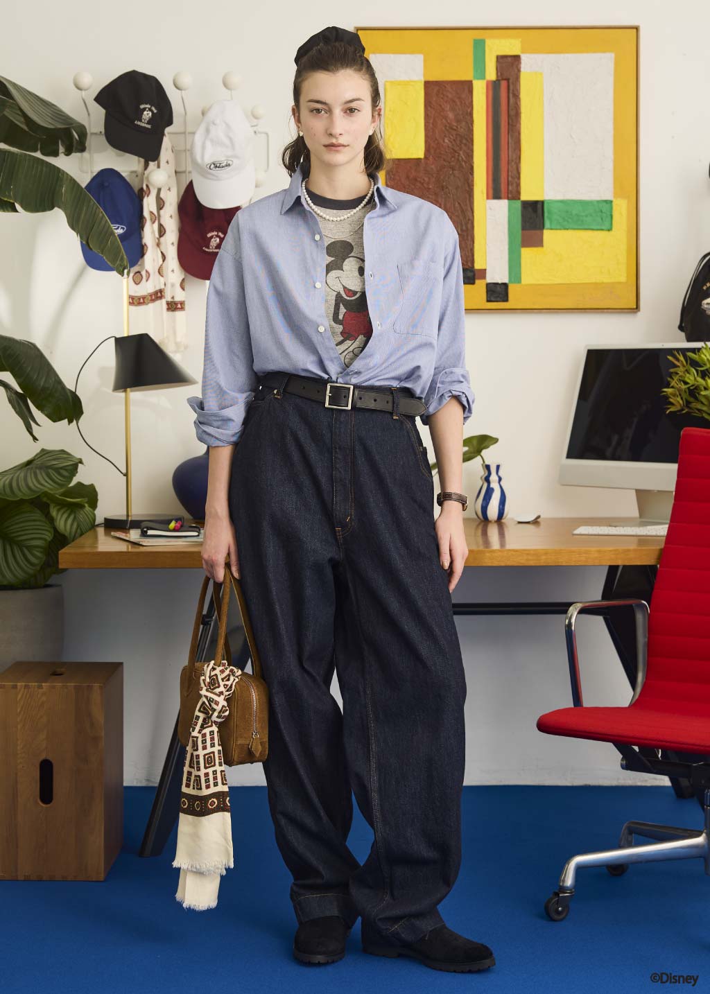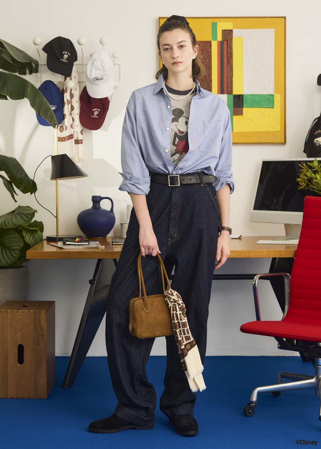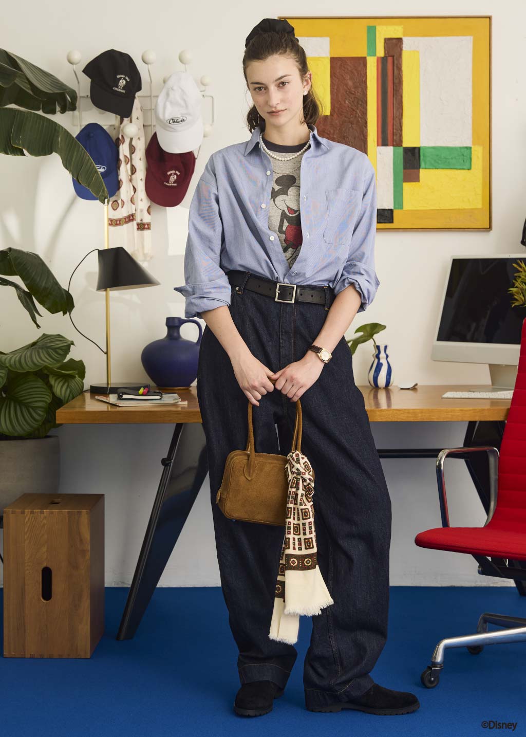 大きすぎず小さすぎないちょうど良いサイジングで、シャツやニットカーディガンの中にレイヤーしても可愛く着られるサイズ感にしています。