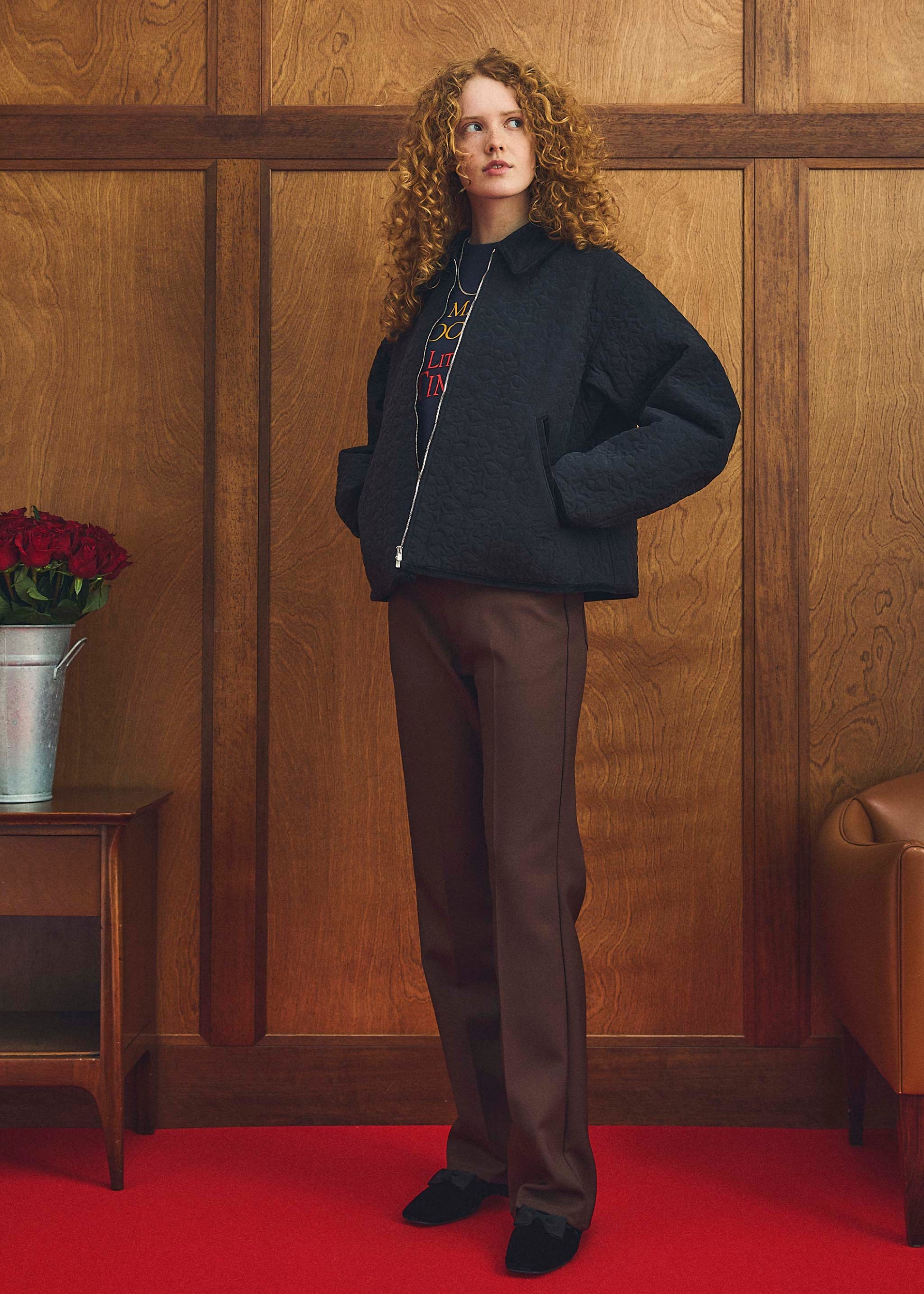 古着によくあるポリエステルのパンツを綺麗なシルエットにアップデートして作りました。