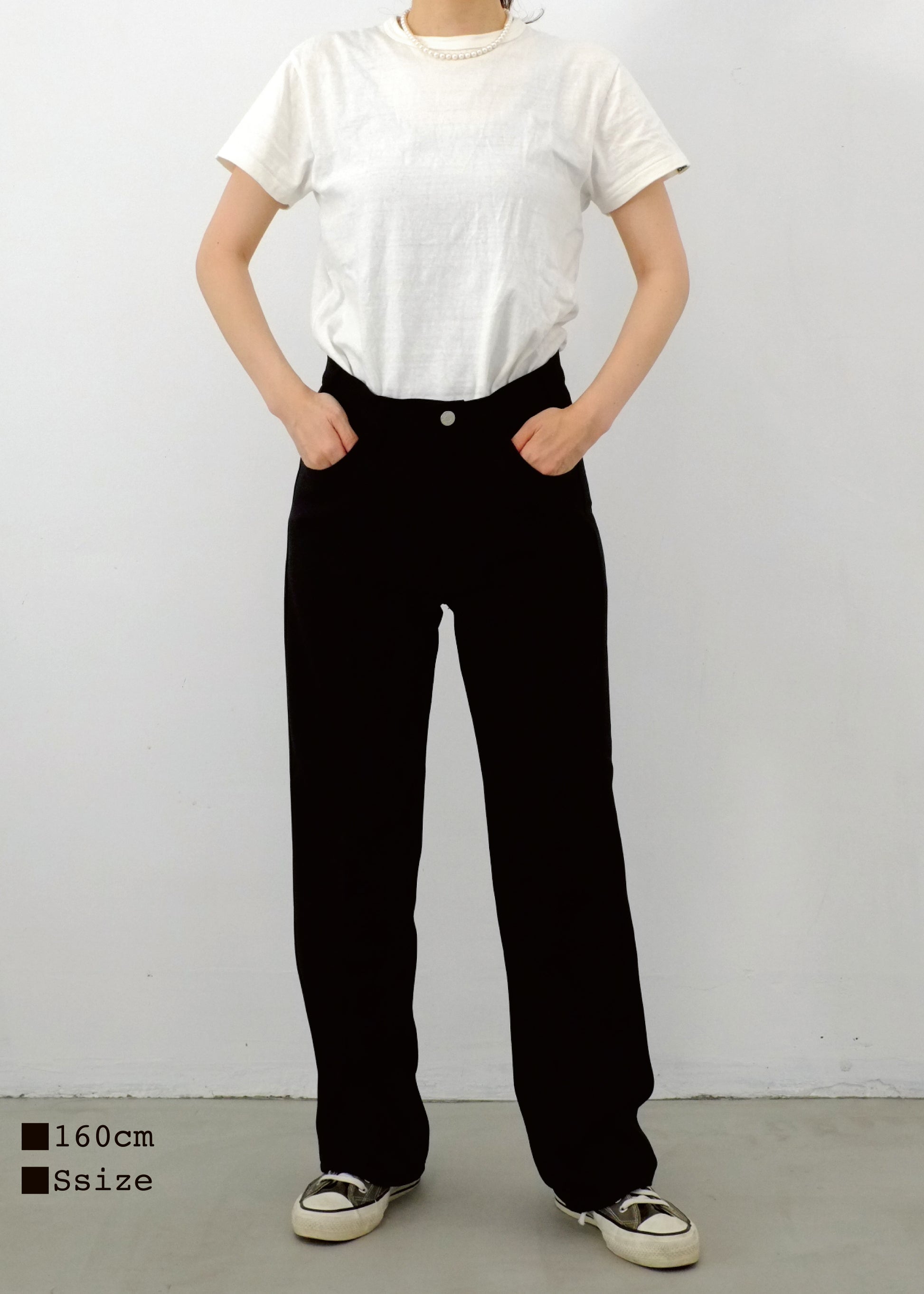すっきりとしたウエスト周りのフォルムで、キレイめに着れるのにオールスターなんかのみんなが大好きなスニーカーに合うように裾幅も設計しています。