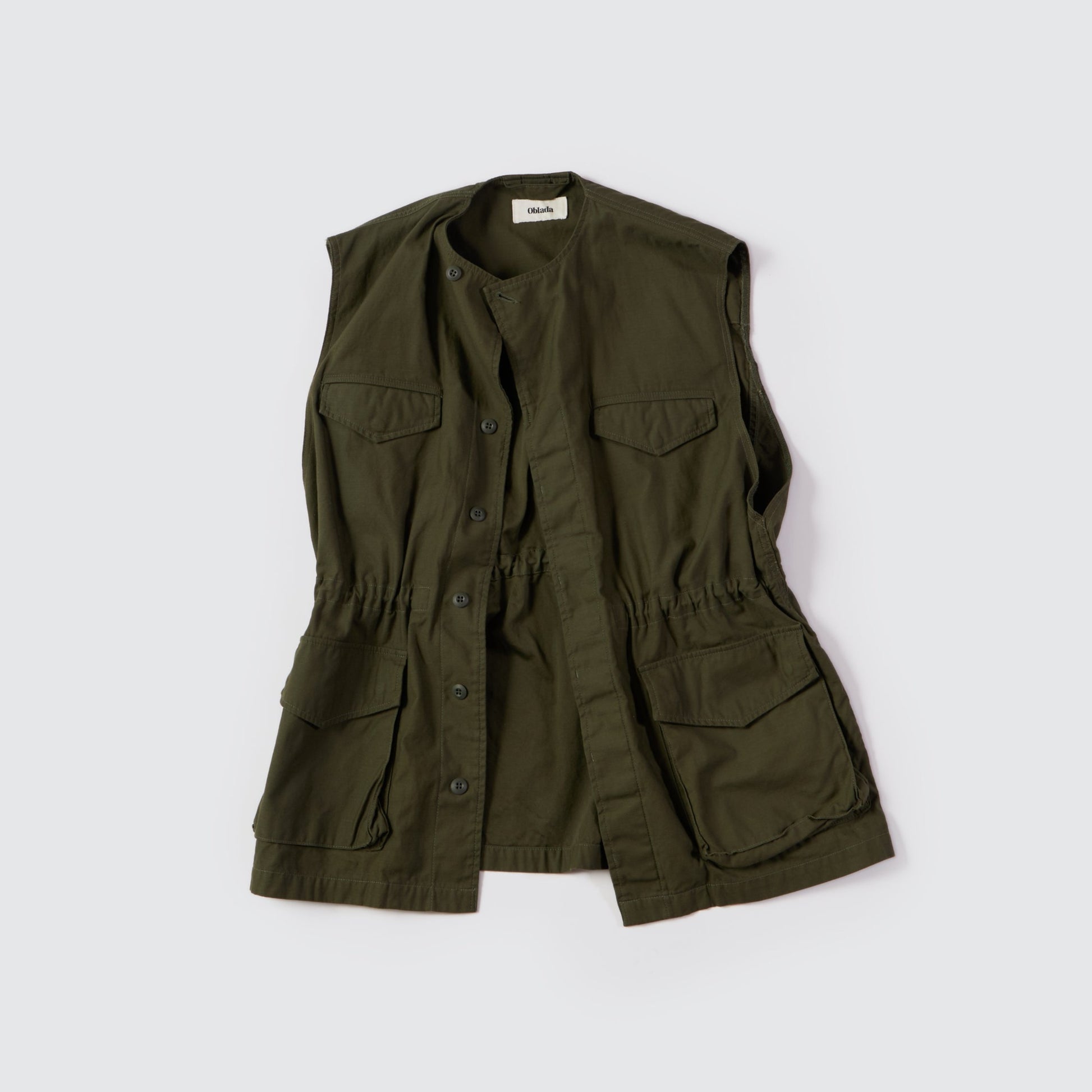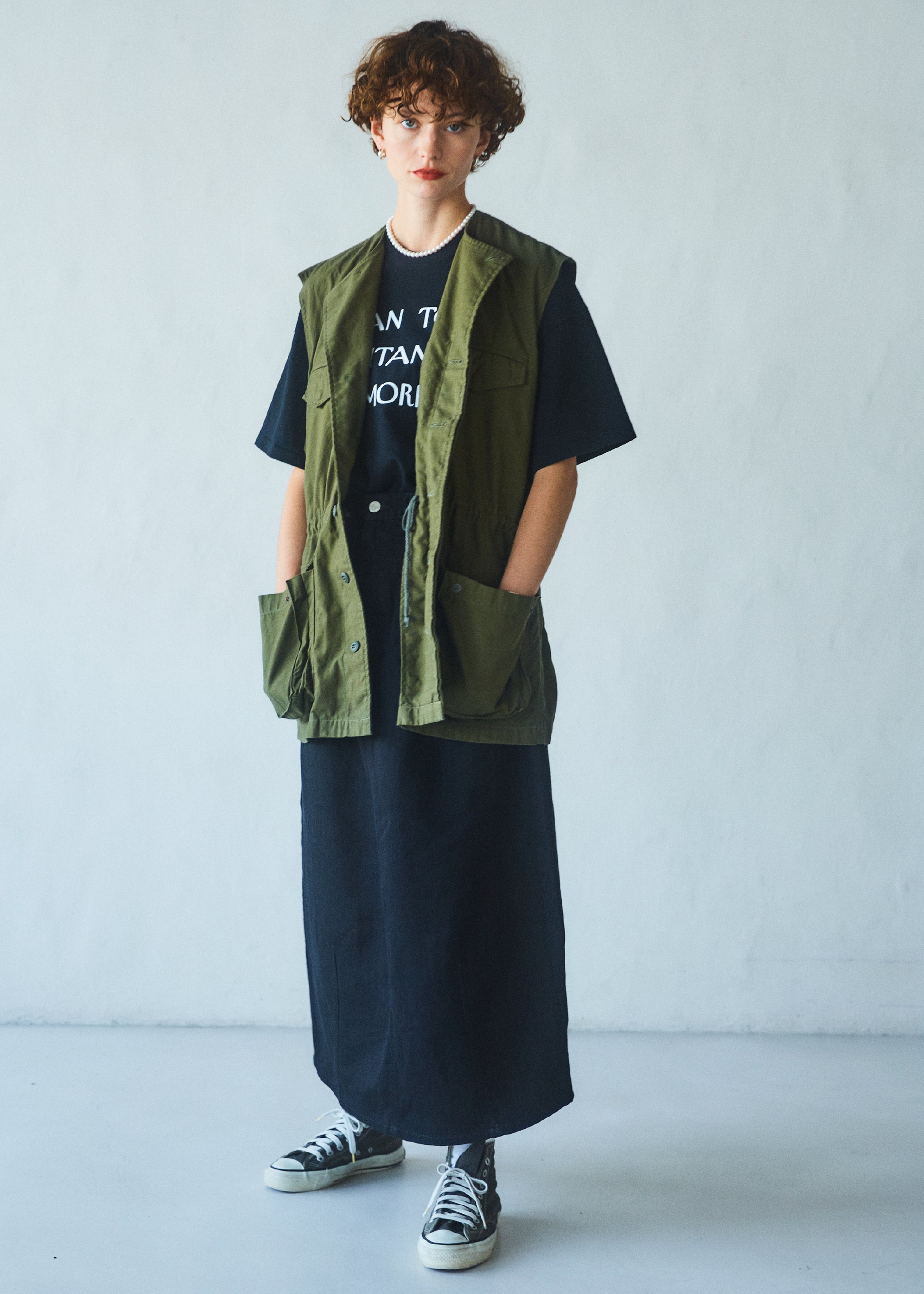Sleeveless military jacket. This is a piece that you want to wear in spring with a T-shirt or sweatshirt. Since it is one-washed, it can be washed at home without shrinking any more. Please wear it with more and more taste.