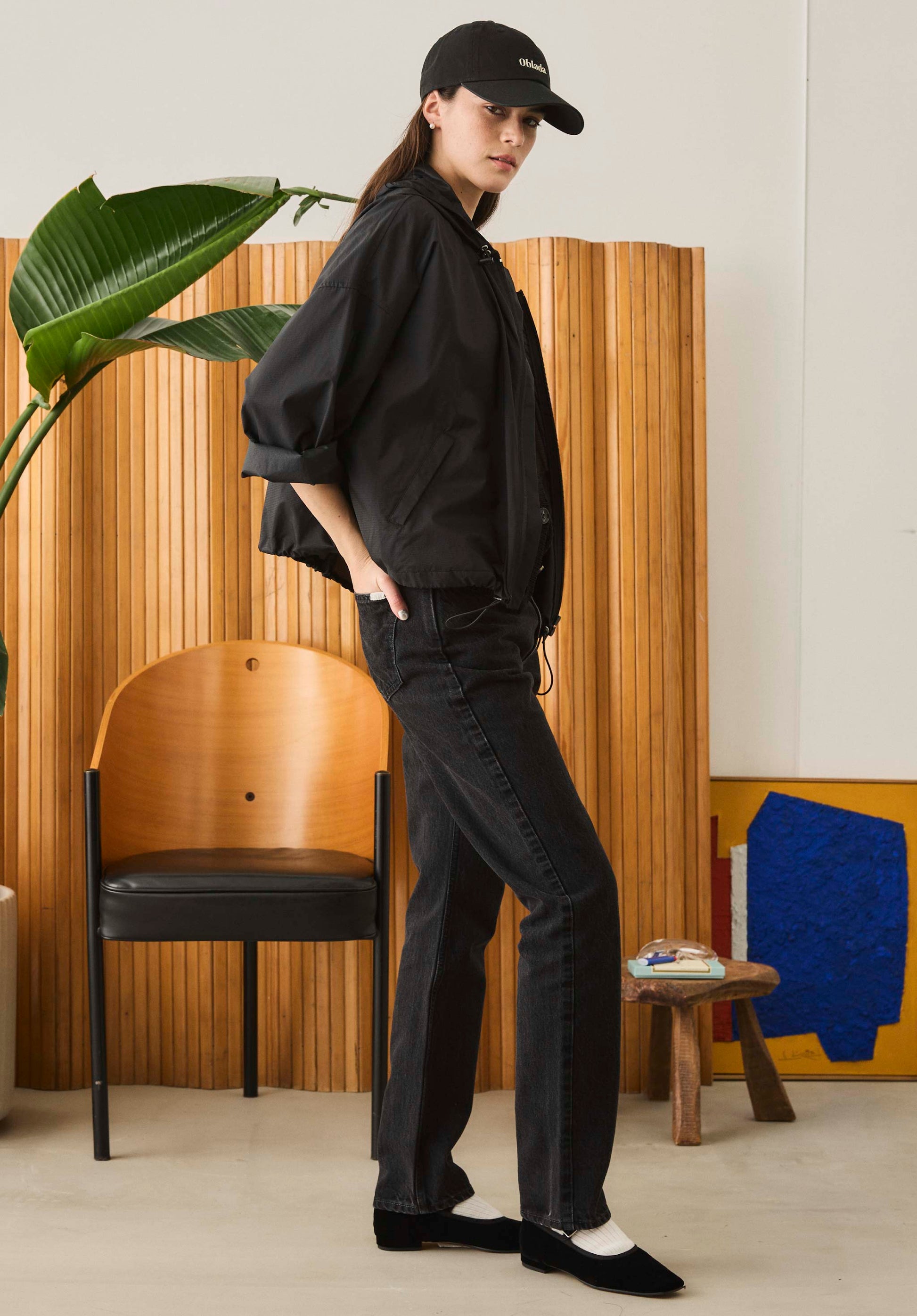 デニムはもちろんのこと、ワンピースなど女性らしいアイテムに合わせても可愛いこのエニーパーカー。