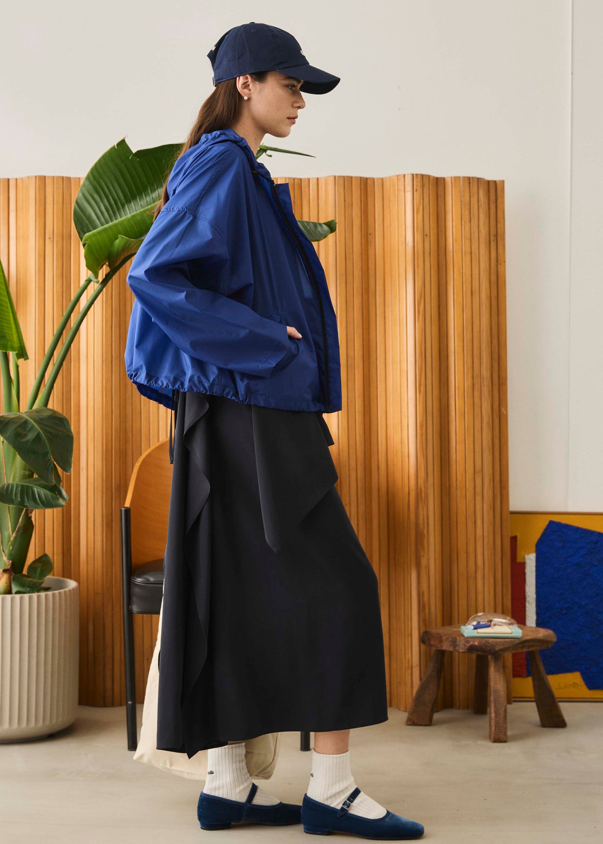 この手のシャカシャカパーカーってスポーツメーカーのものも素晴らしいのですが、女性が着るにはちょっとフォルムがちょっと細くて長いのが気になっていました。