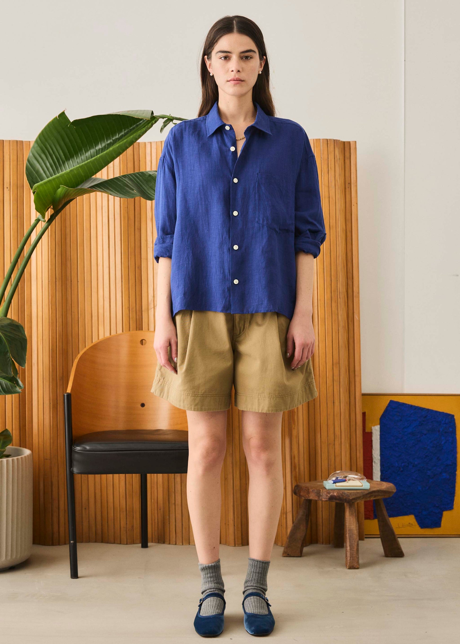 涼しいシャツを作ろうと、リネン素材で身幅がゆったりとした生地になります。