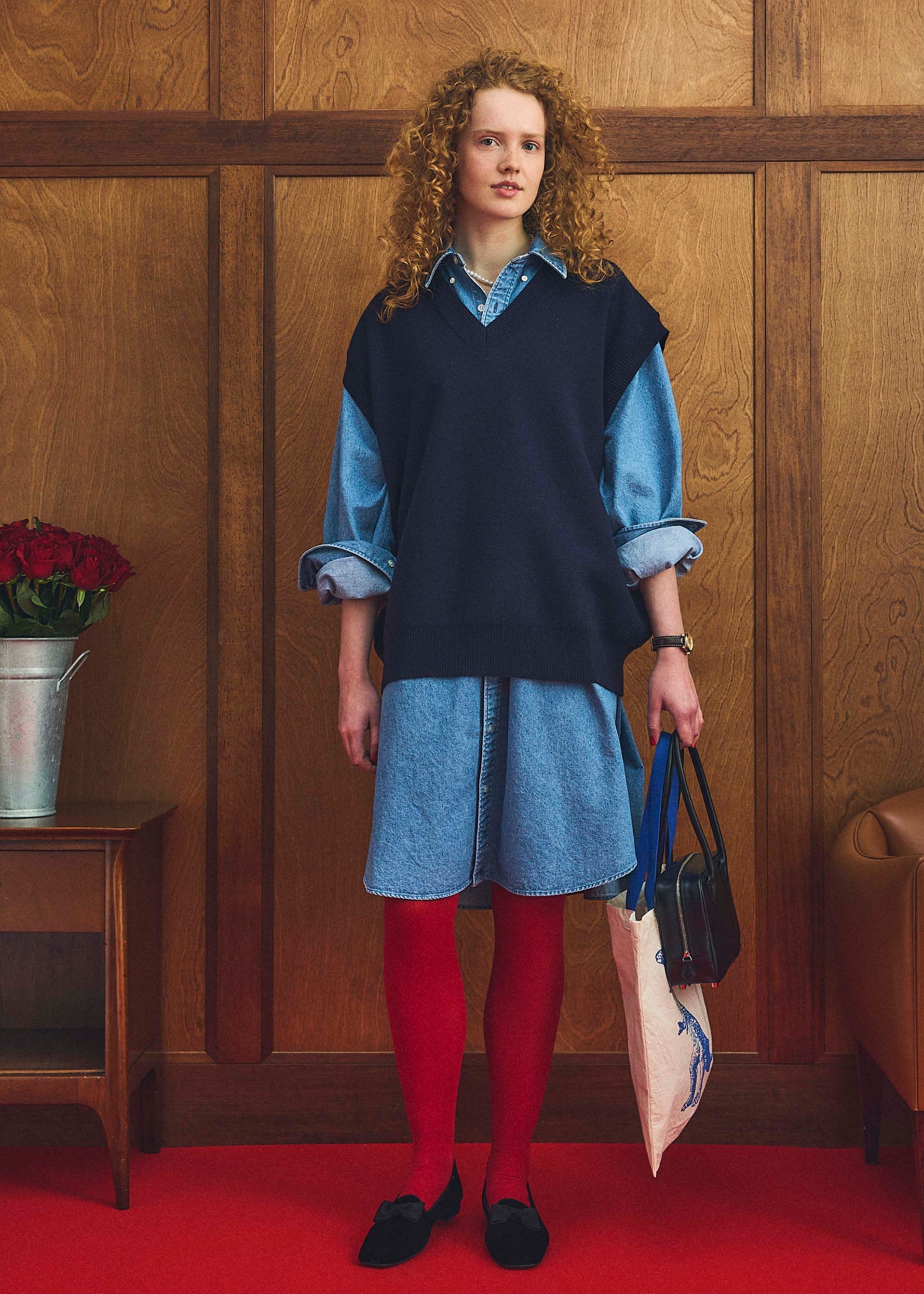 なかなか寒くならない秋冬にはこんなニットベストが活躍するはず。
