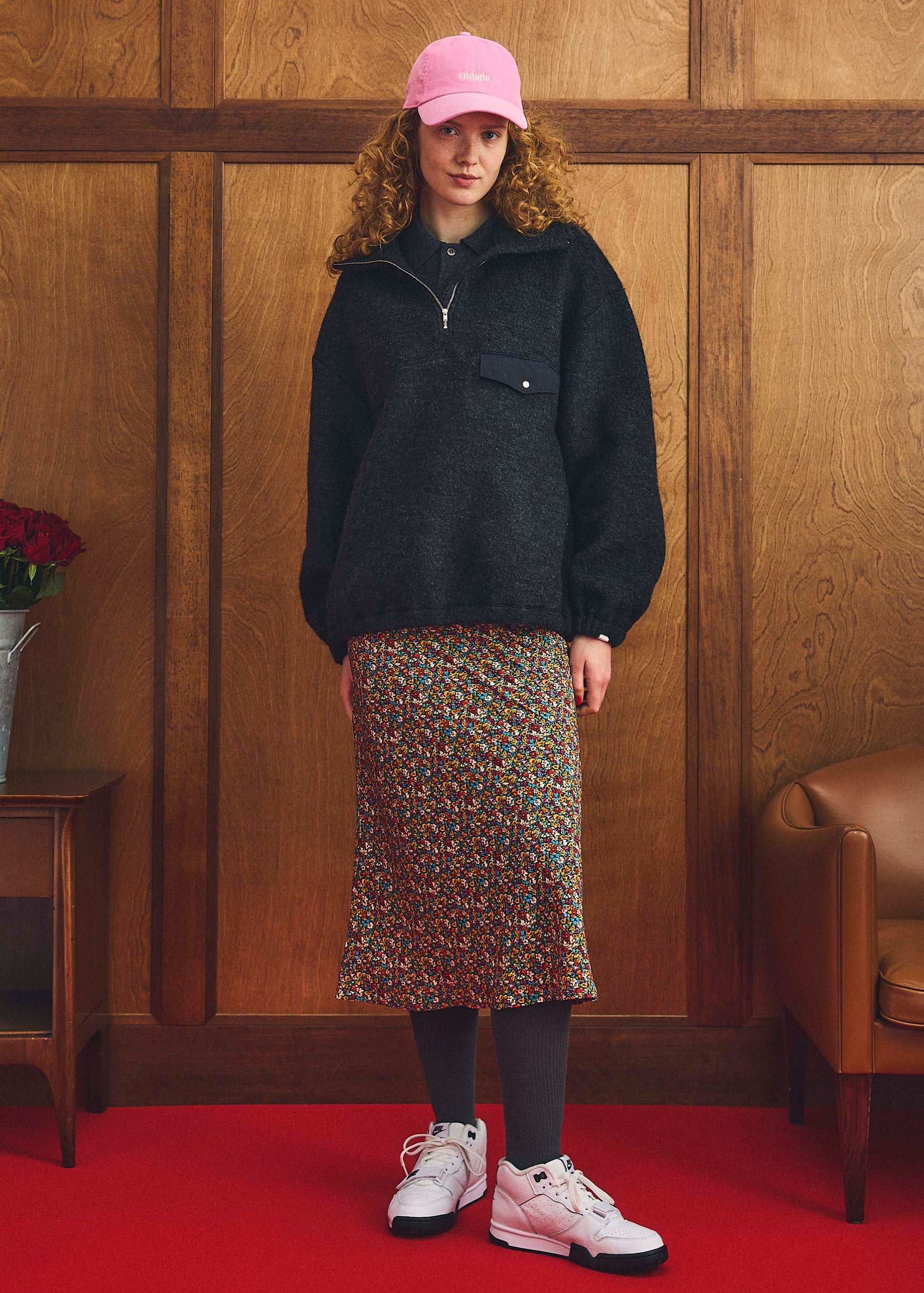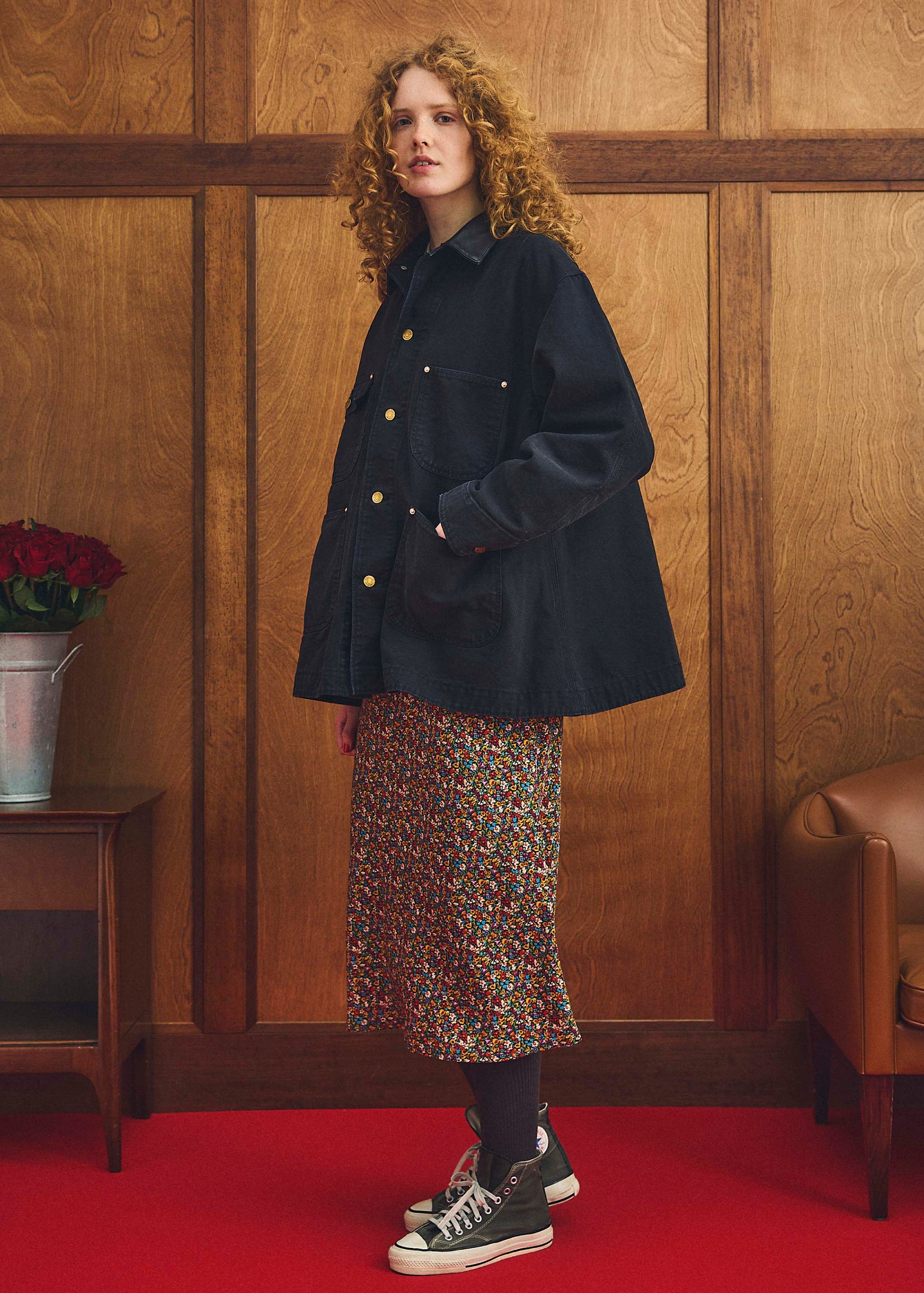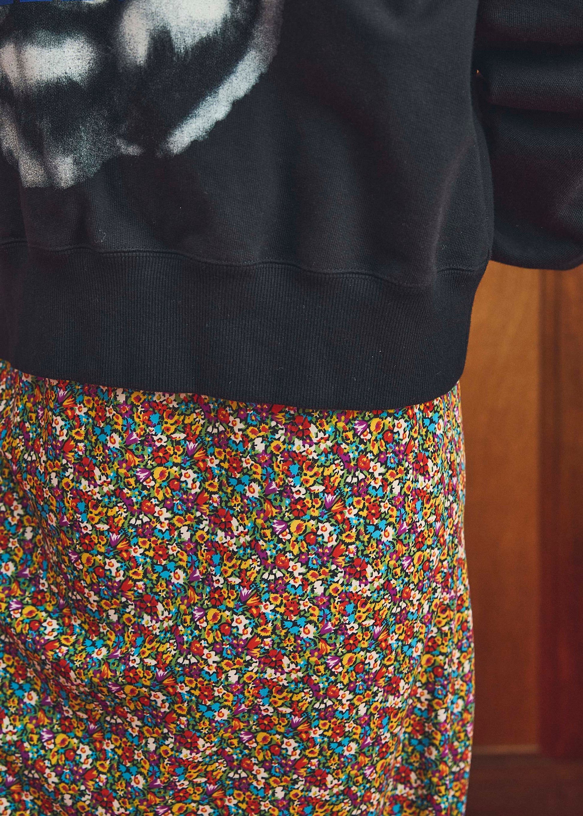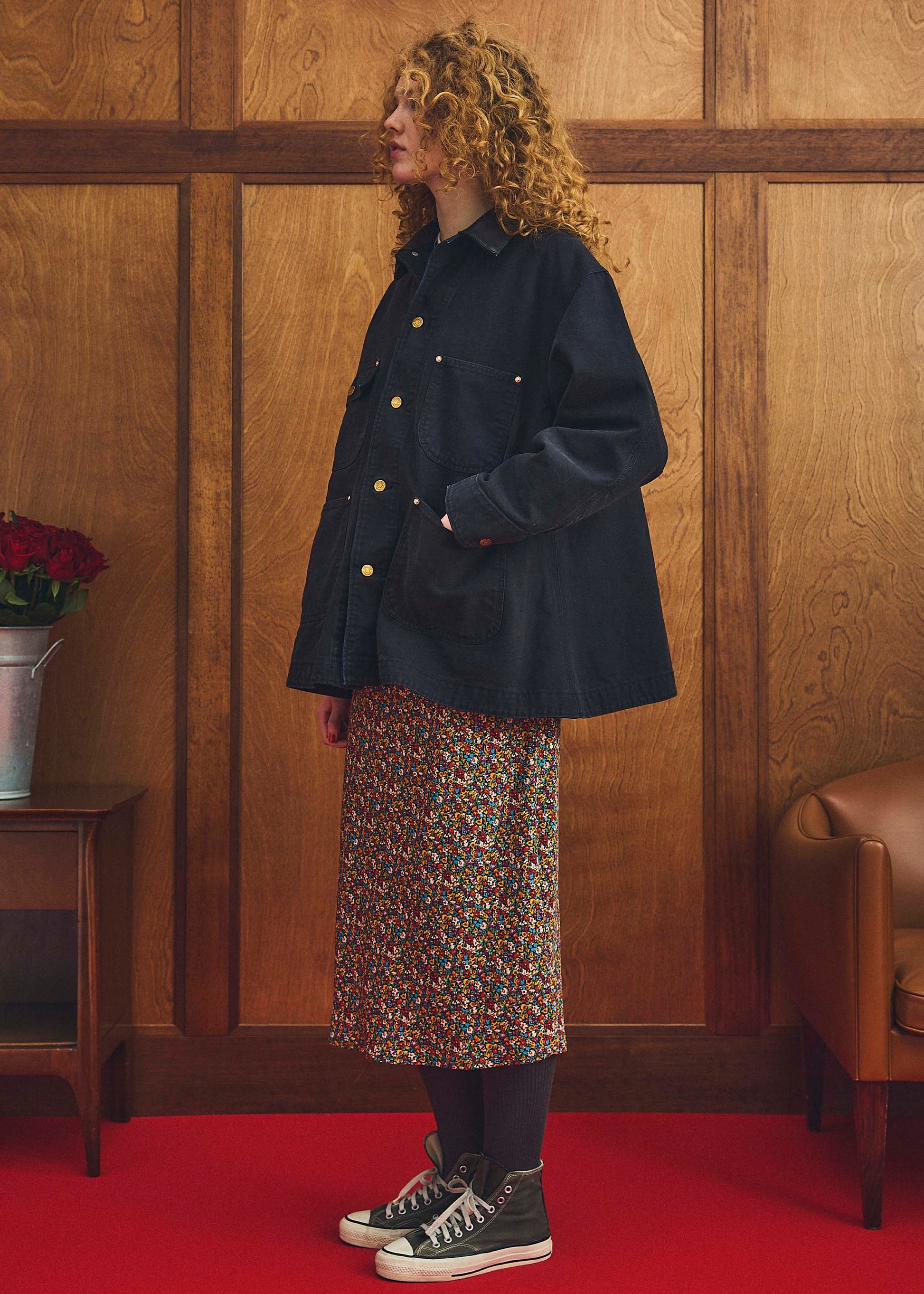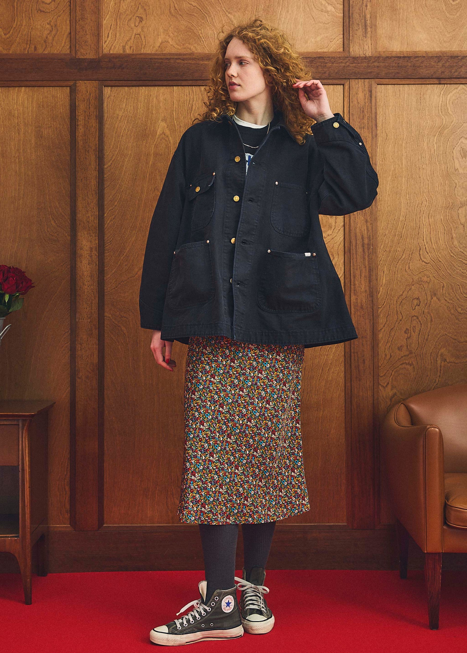 クラシックなフラワープリントは華やかだけど、どこか古着のような落ち着きもあります。