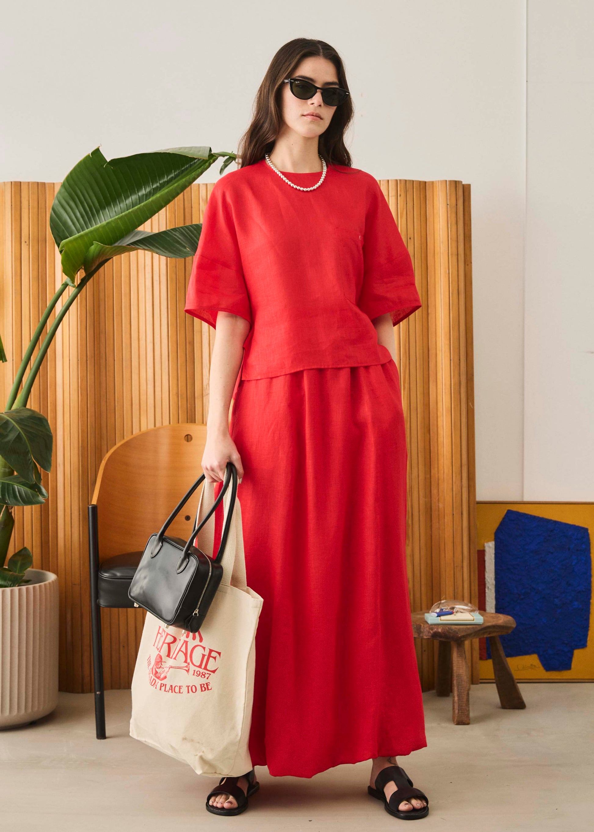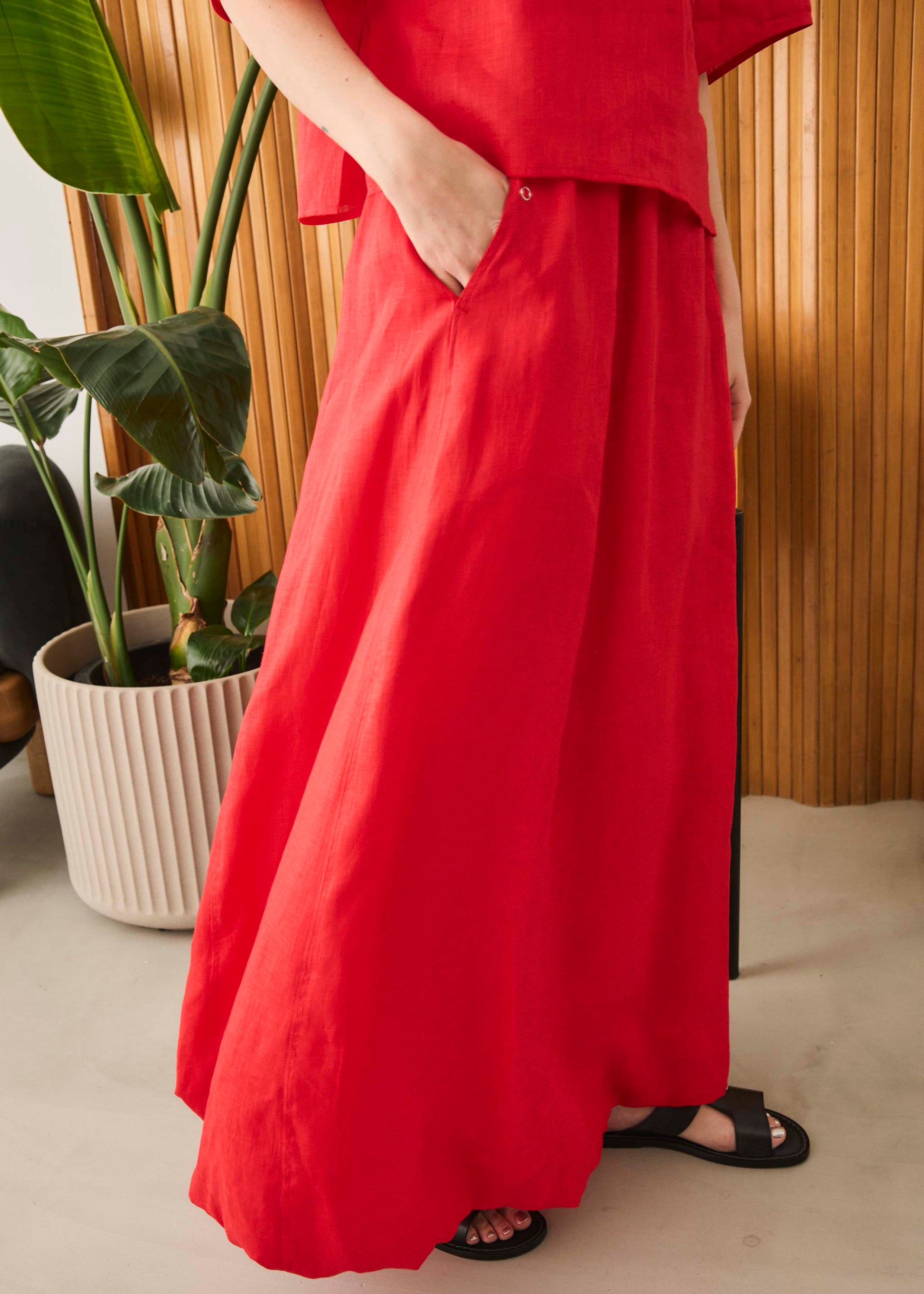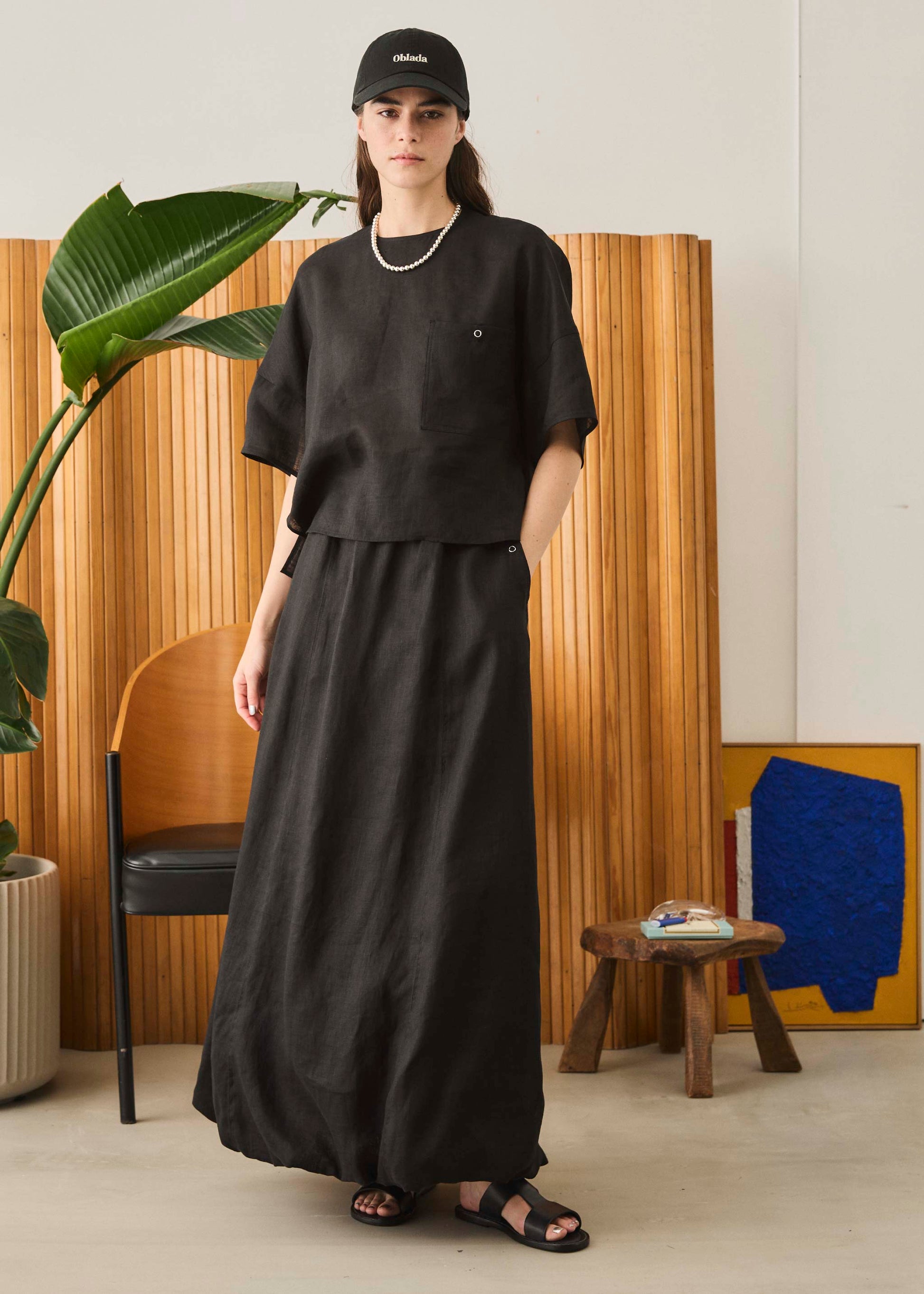 リネン100%の軽やかな生地で、裾がバルーンになっているスカートになります。