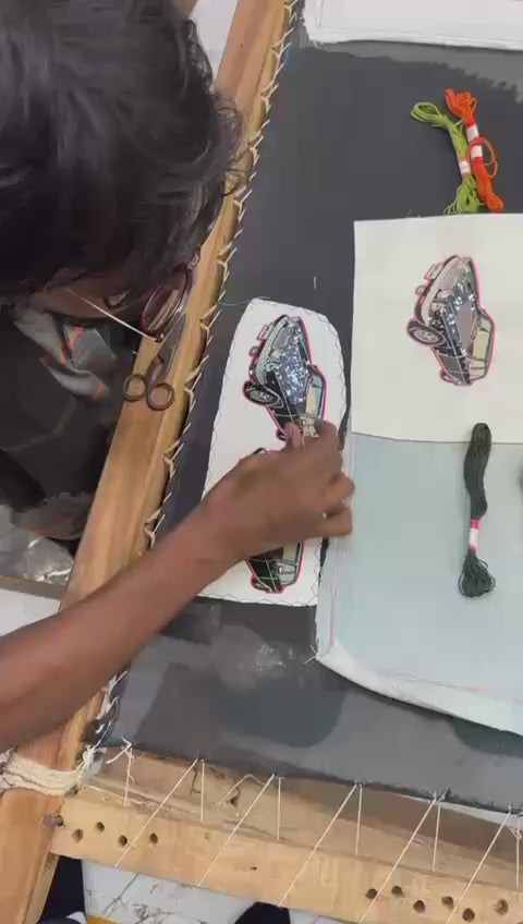 クラシックな英国車のデザインをスパンコールやビーズなどで刺繍したらもう可愛いに決まってます!