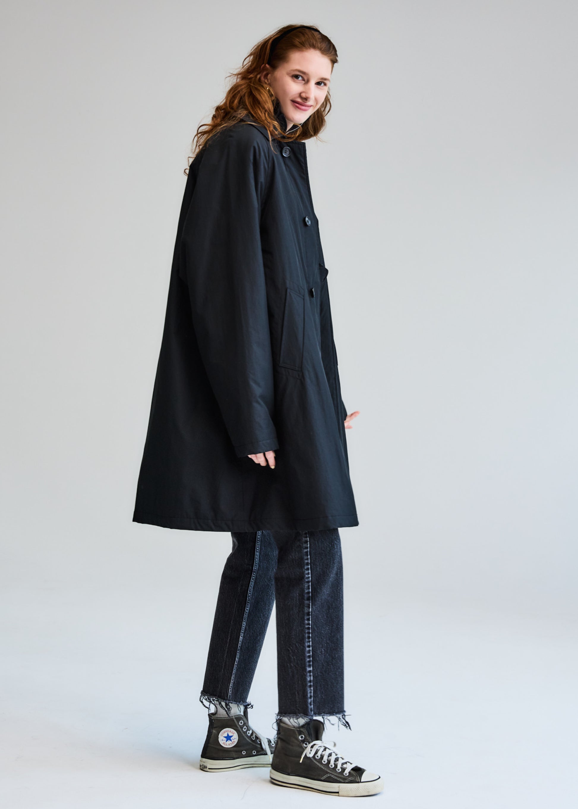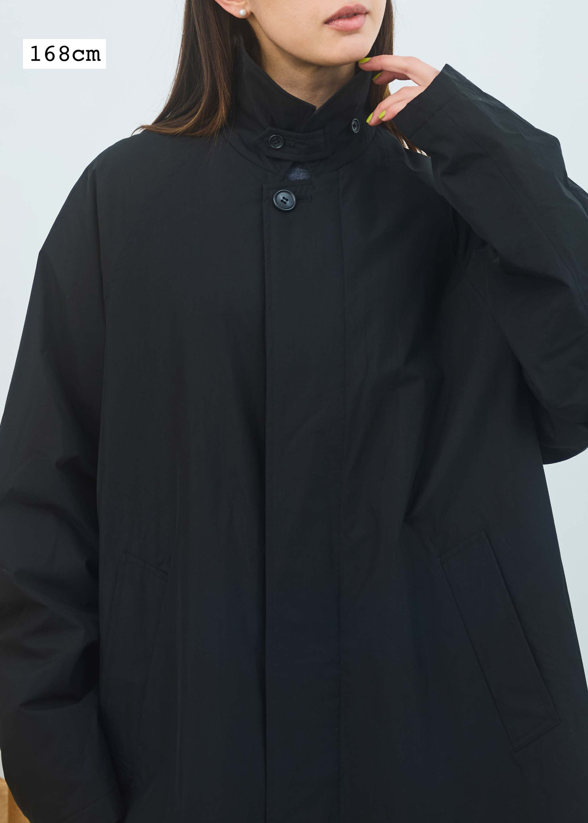 デザインは、オーソドックスなステンカラーコートですが、ラグランスリーブのアームホールが大きいので、チャンピオンのリバースみたいなアームが太いものもちゃんと着ることができます。