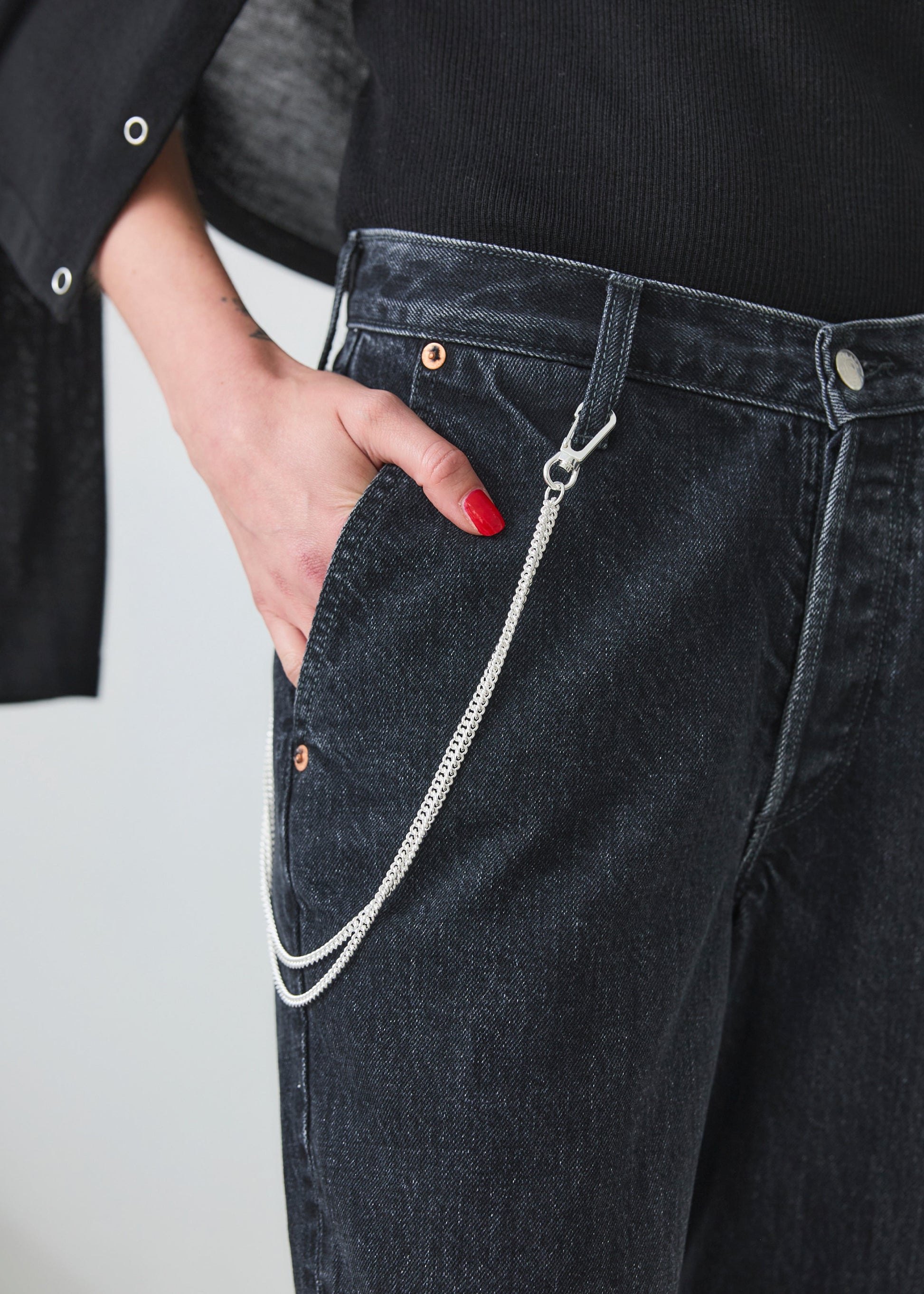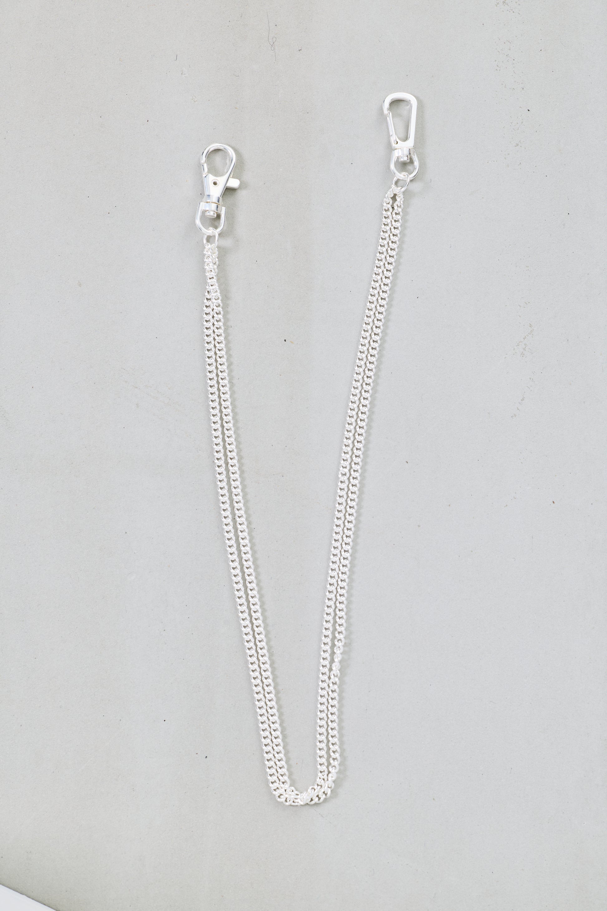 2重のステンレスチェーンに、シルバーコーティングをしています。