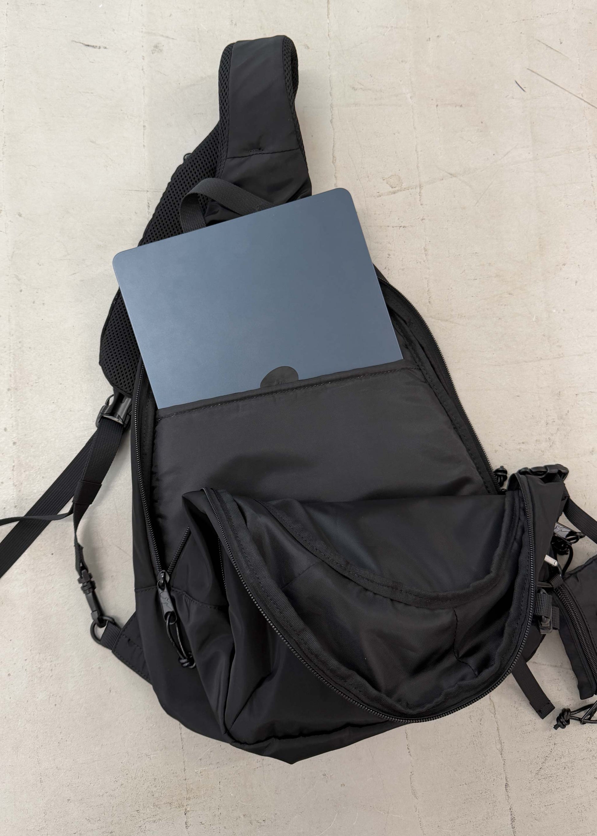 そんなガジェットをリュックほど大げさではなく、ワンショルダーで機能的に持ち運べるこちらのバディスリング。ワンショルダーゆえの上品さが最大の魅。