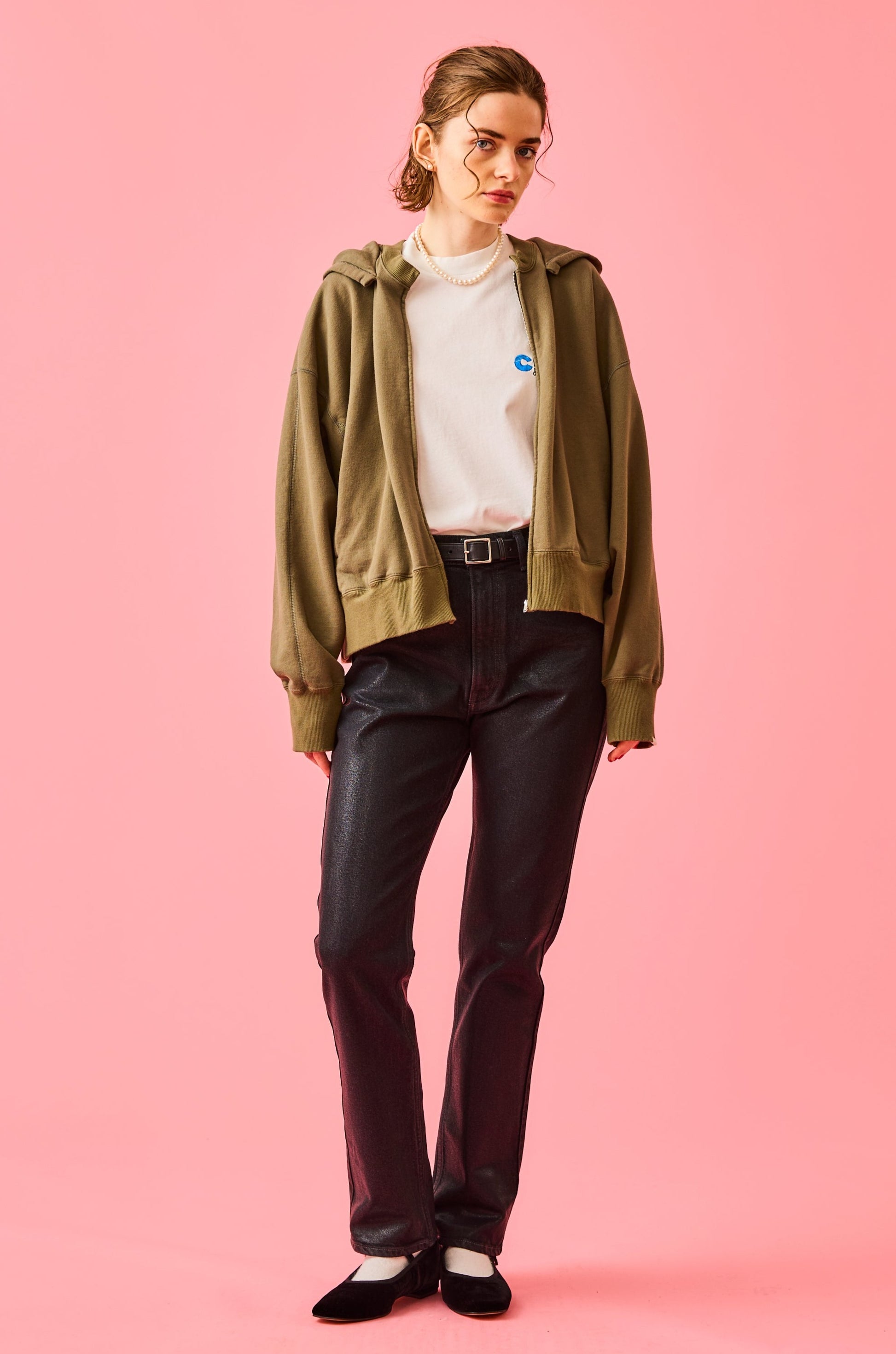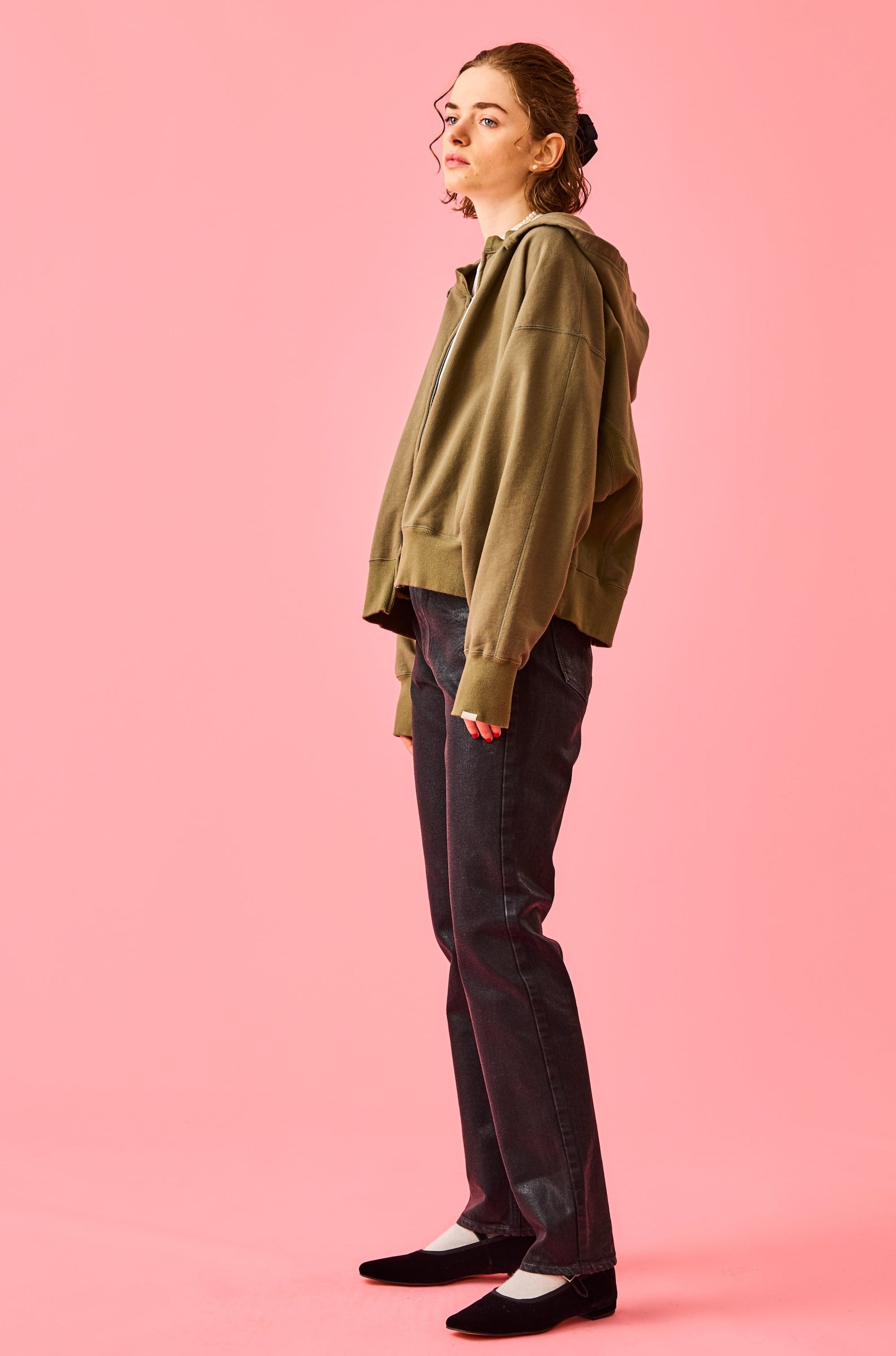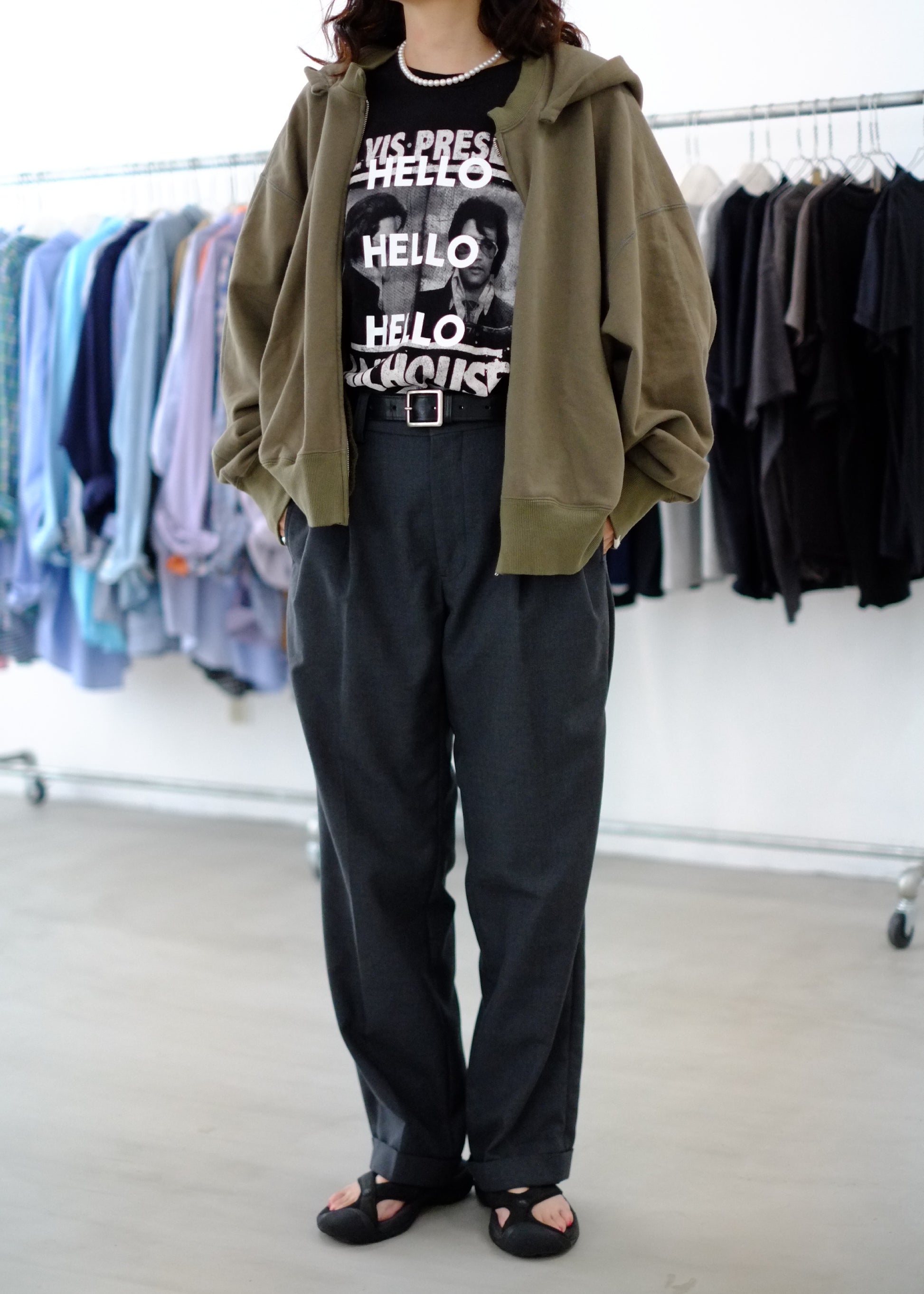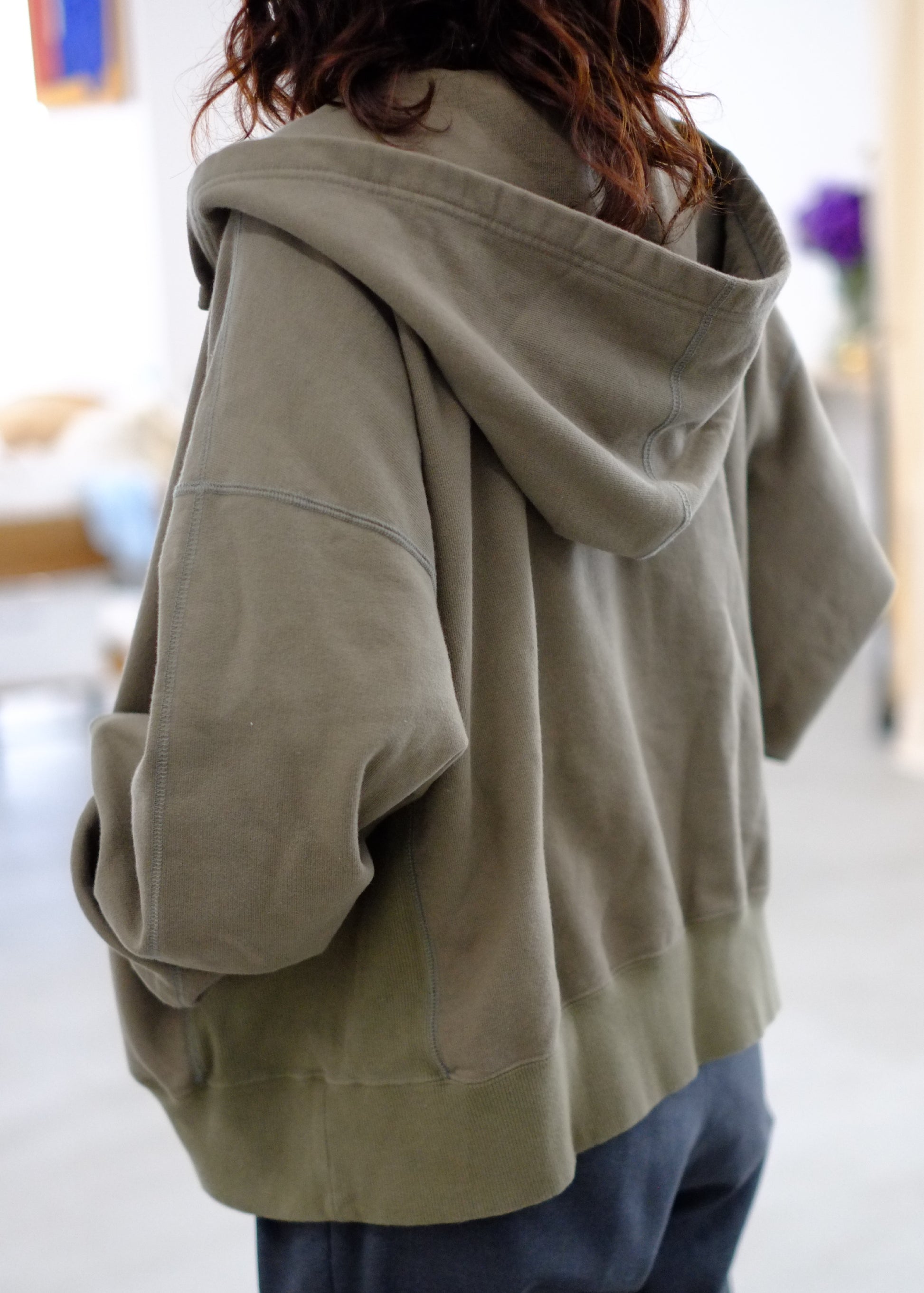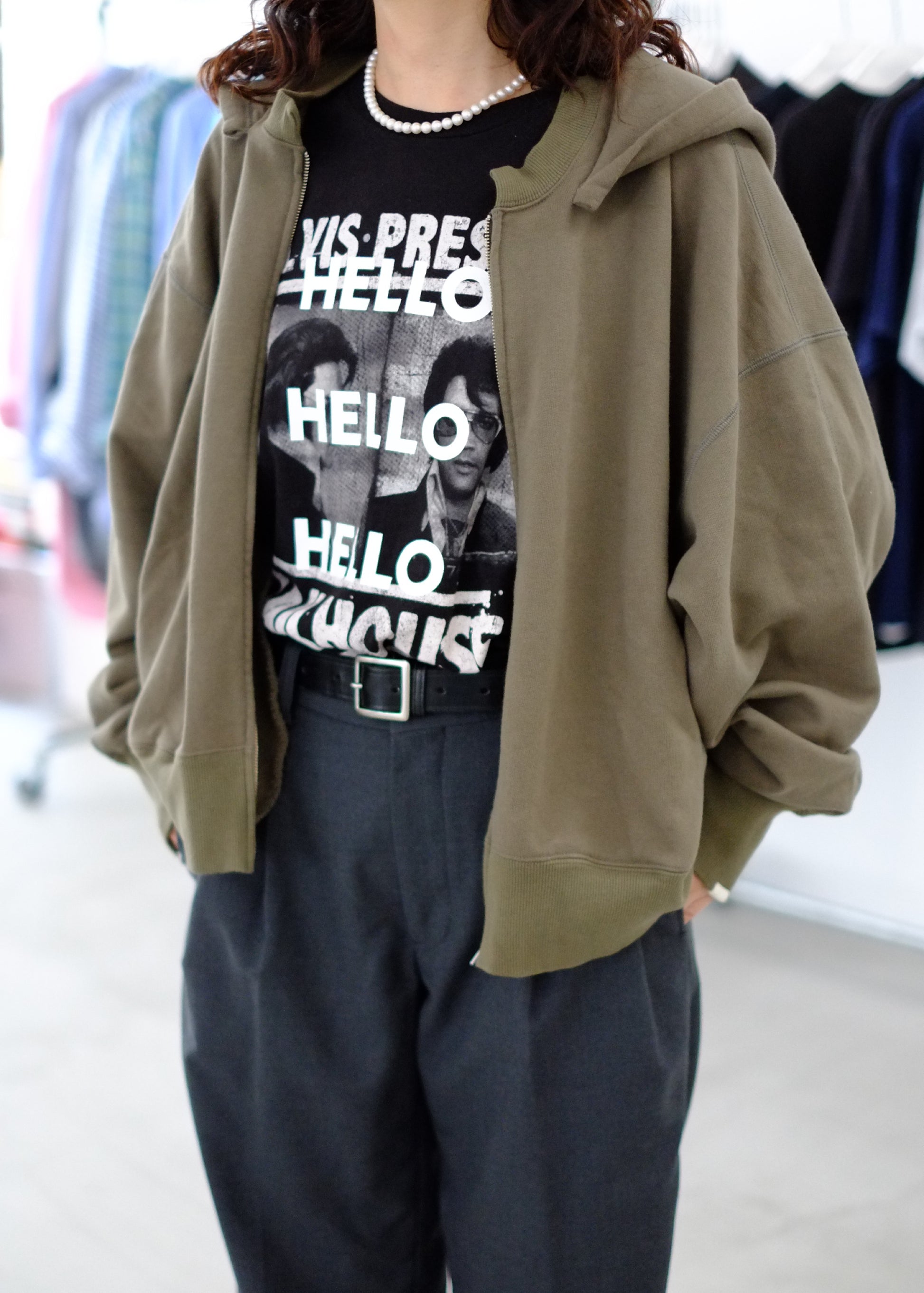ヴィンテージのスウェットのように後付けのフードで、フロントがジップアップというのが魅力。ポケットもあえてカンガルーポケットではなく、サイドに配置することでモダンなデザインに落とし込んでいます。