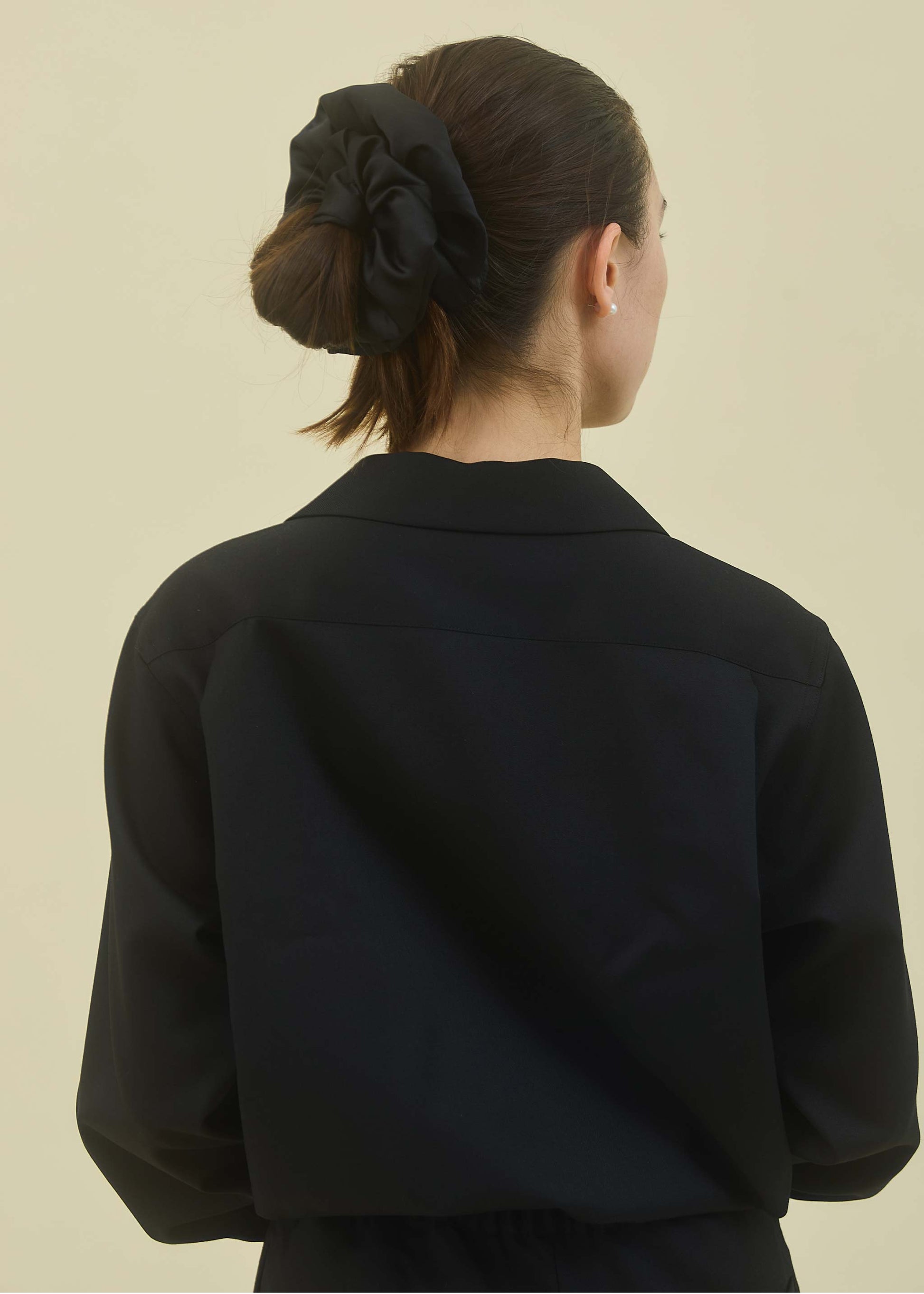 シンプルなシュシュですが、スタイリングのアクセントになるので、おすすめ。