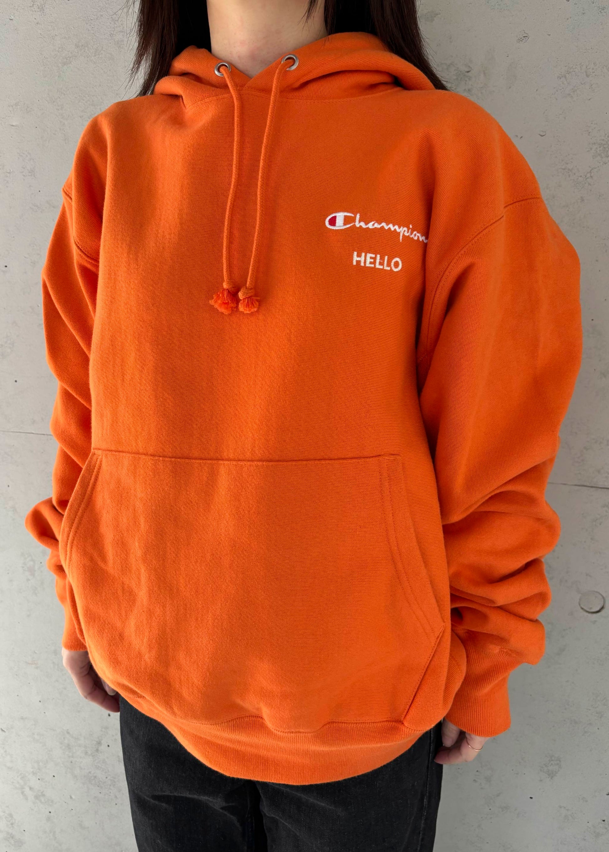 ヴィンテージスウェットの左胸にHELLO刺繍を施しました!
