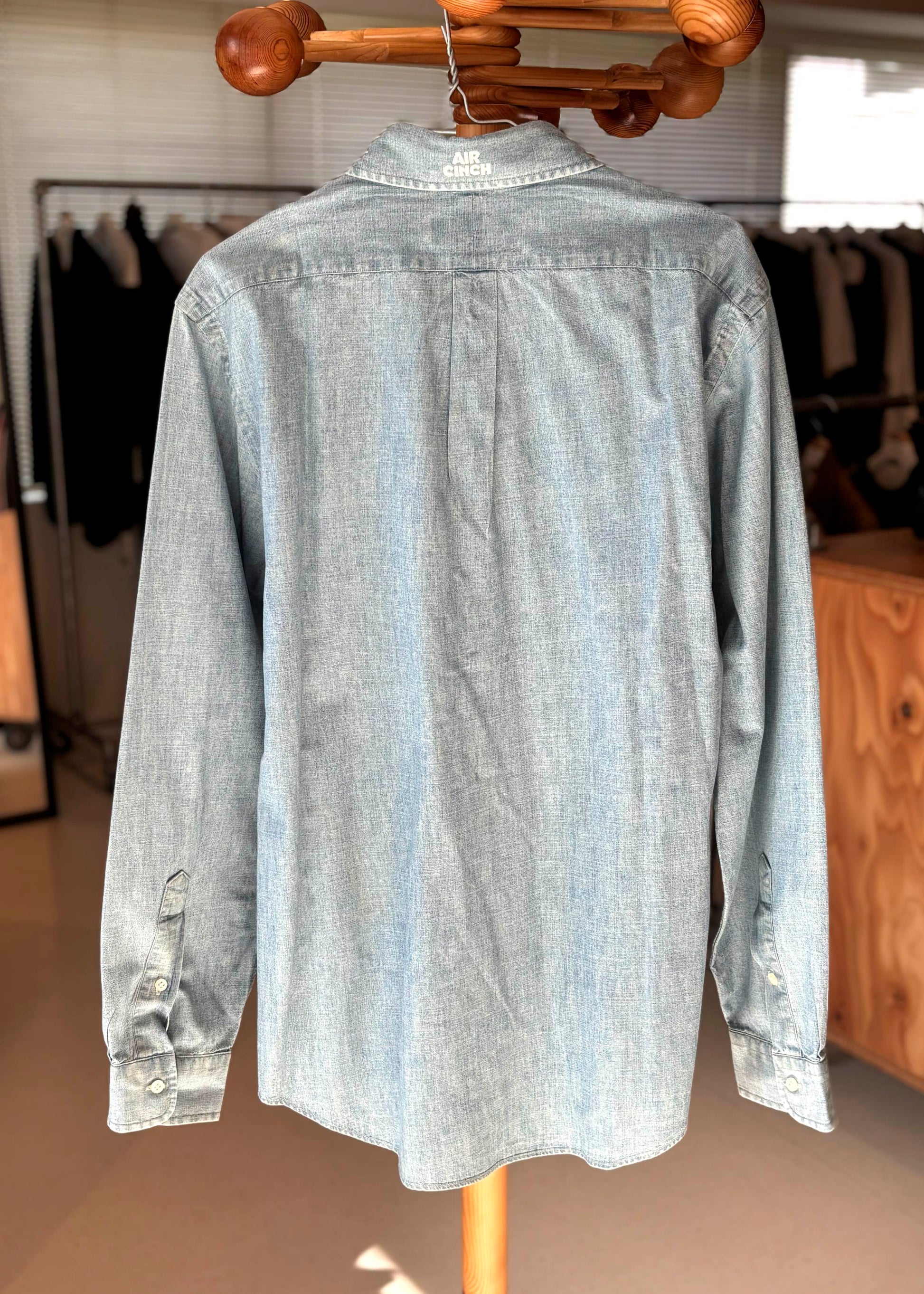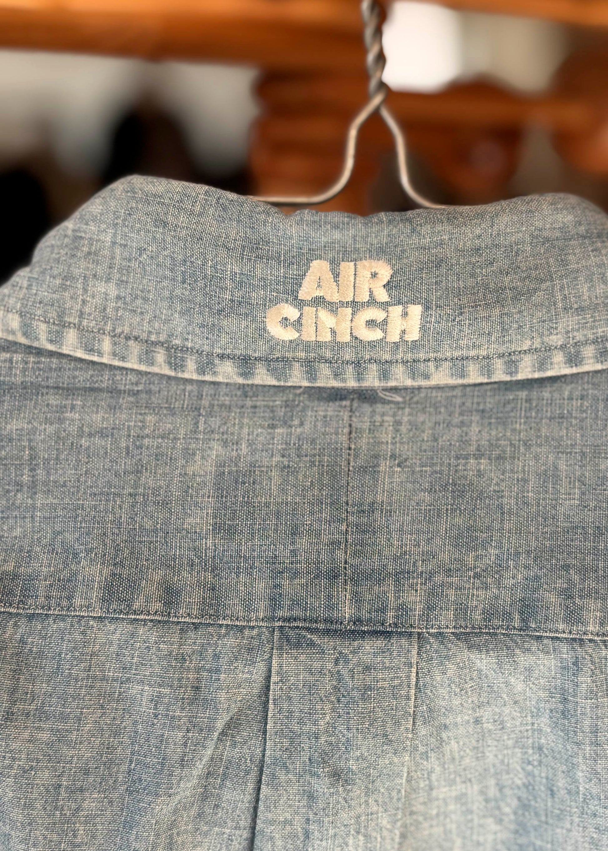 ヴィンテージシャツの後ろ襟に「AIR CINCH」を刺繍したカスタムシャツ。