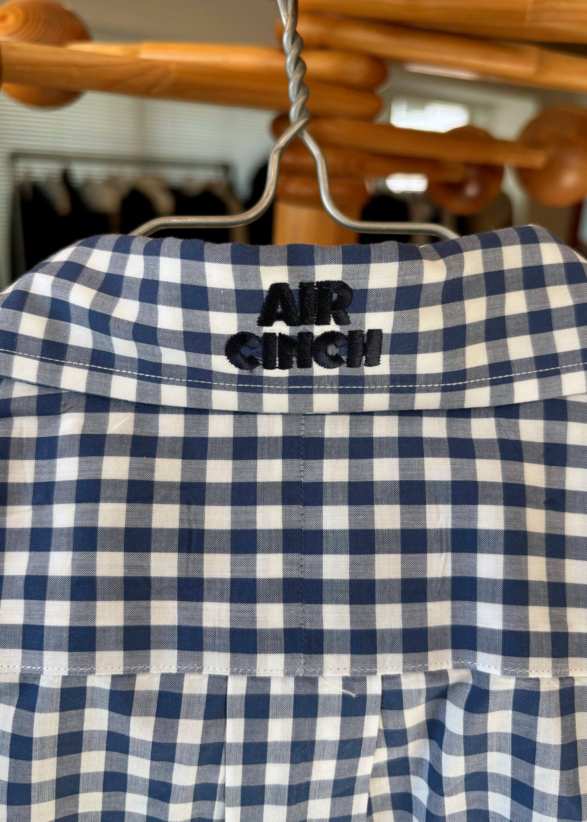 ヴィンテージシャツの後ろ襟に「AIR CINCH」を刺繍したカスタムシャツ。