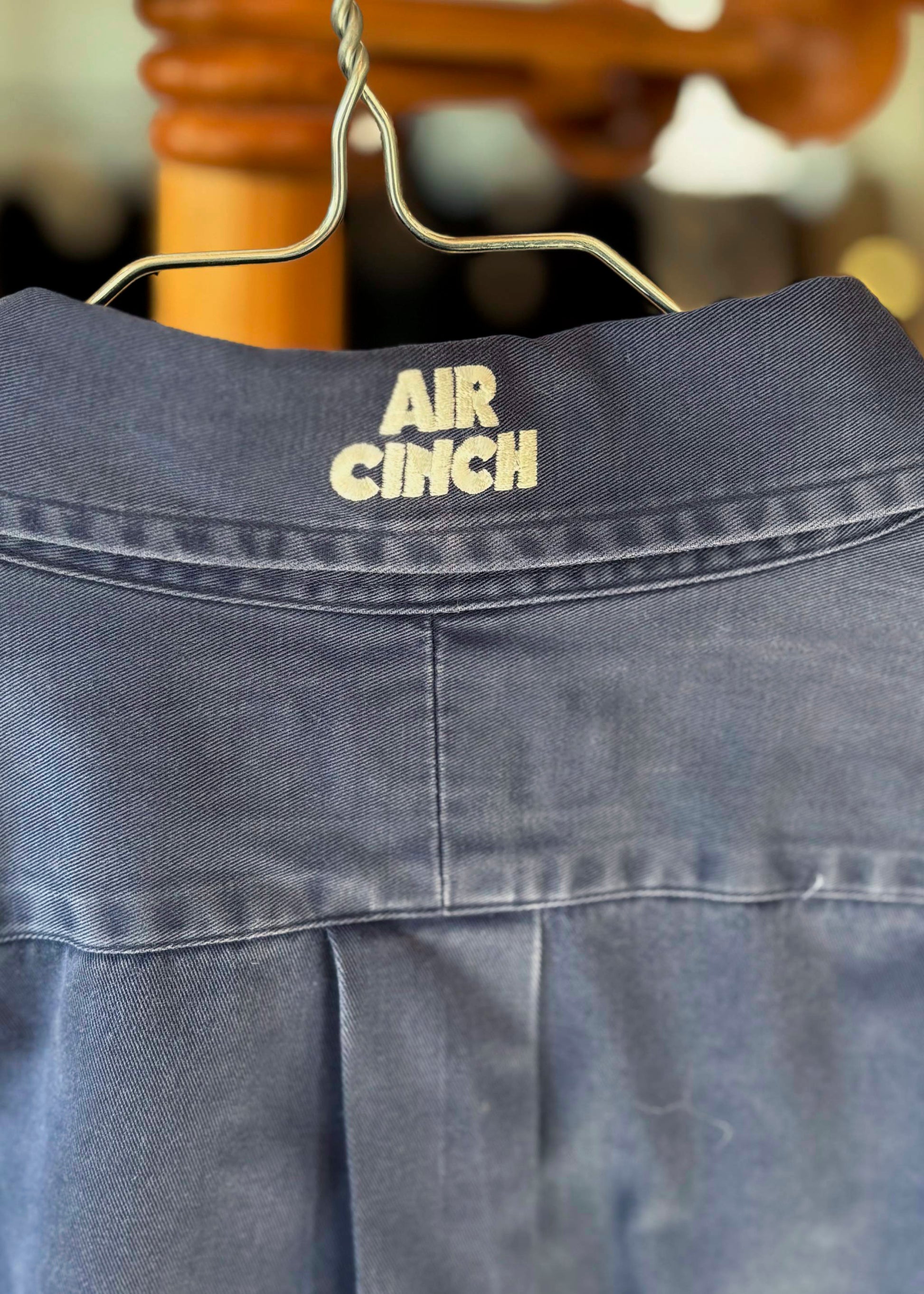 ヴィンテージシャツの後ろ襟に「AIR CINCH」を刺繍したカスタムシャツ。