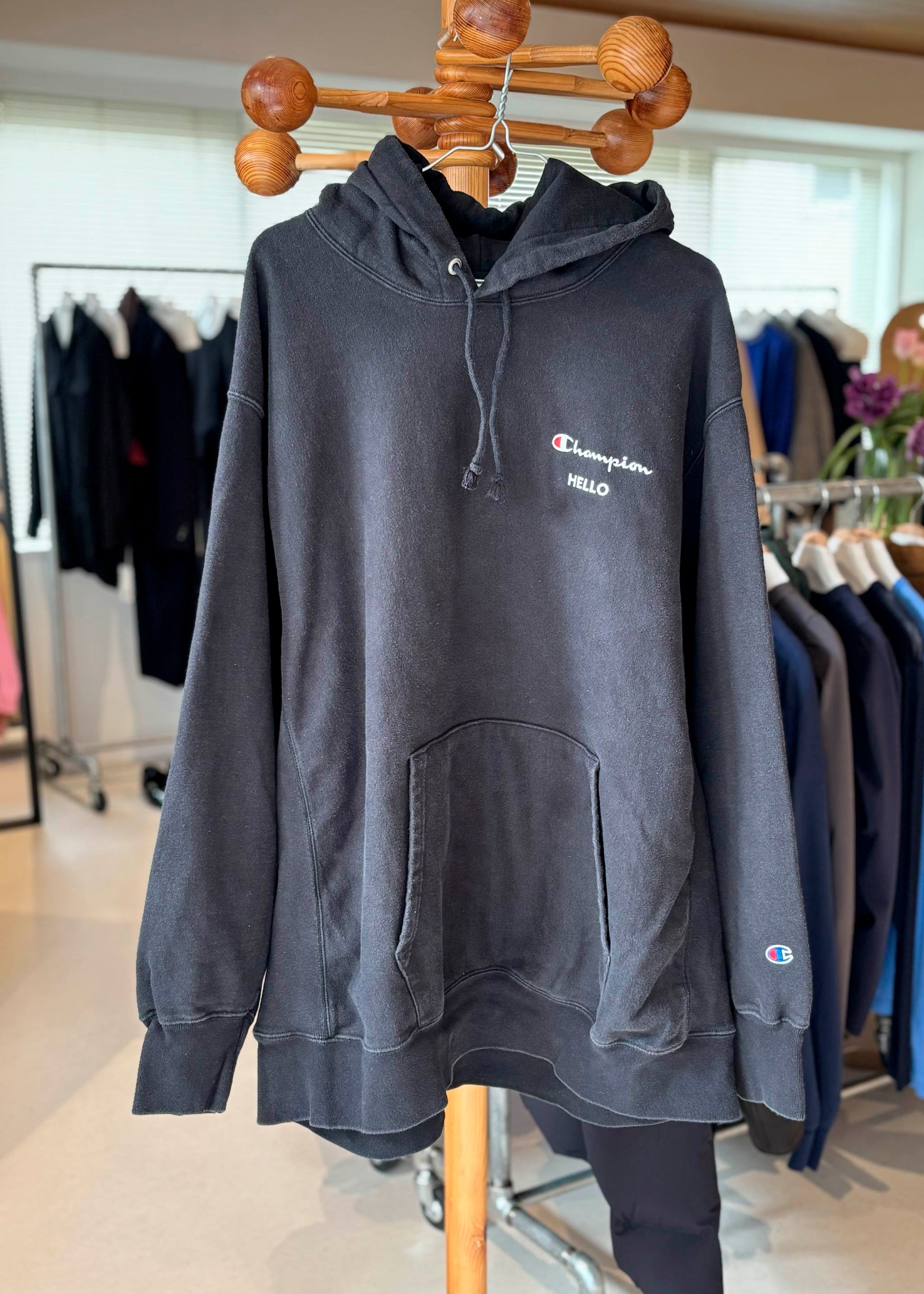 ヴィンテージスウェットの左胸にHELLO刺繍を施しました!